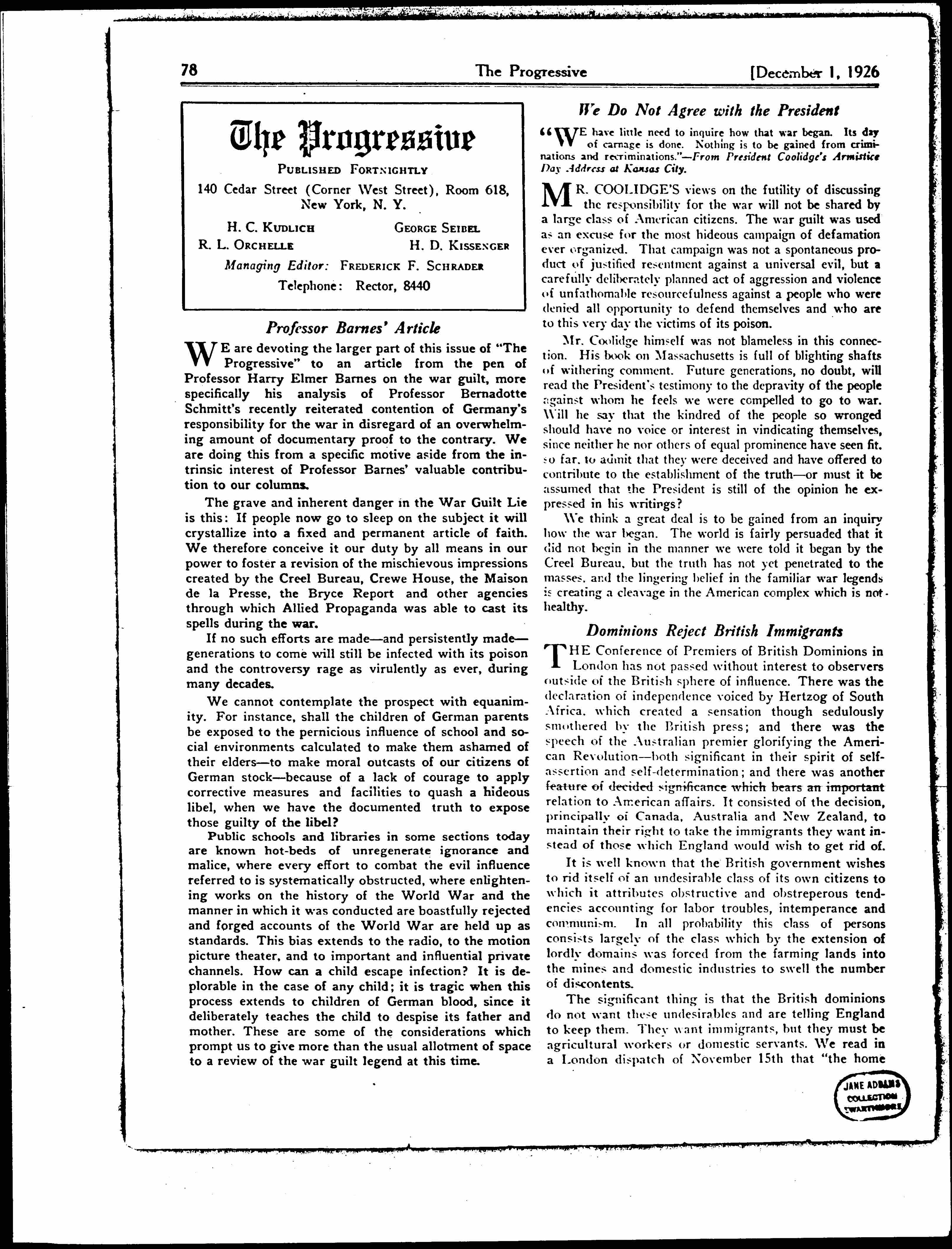 The Progressive, December 1, 1926