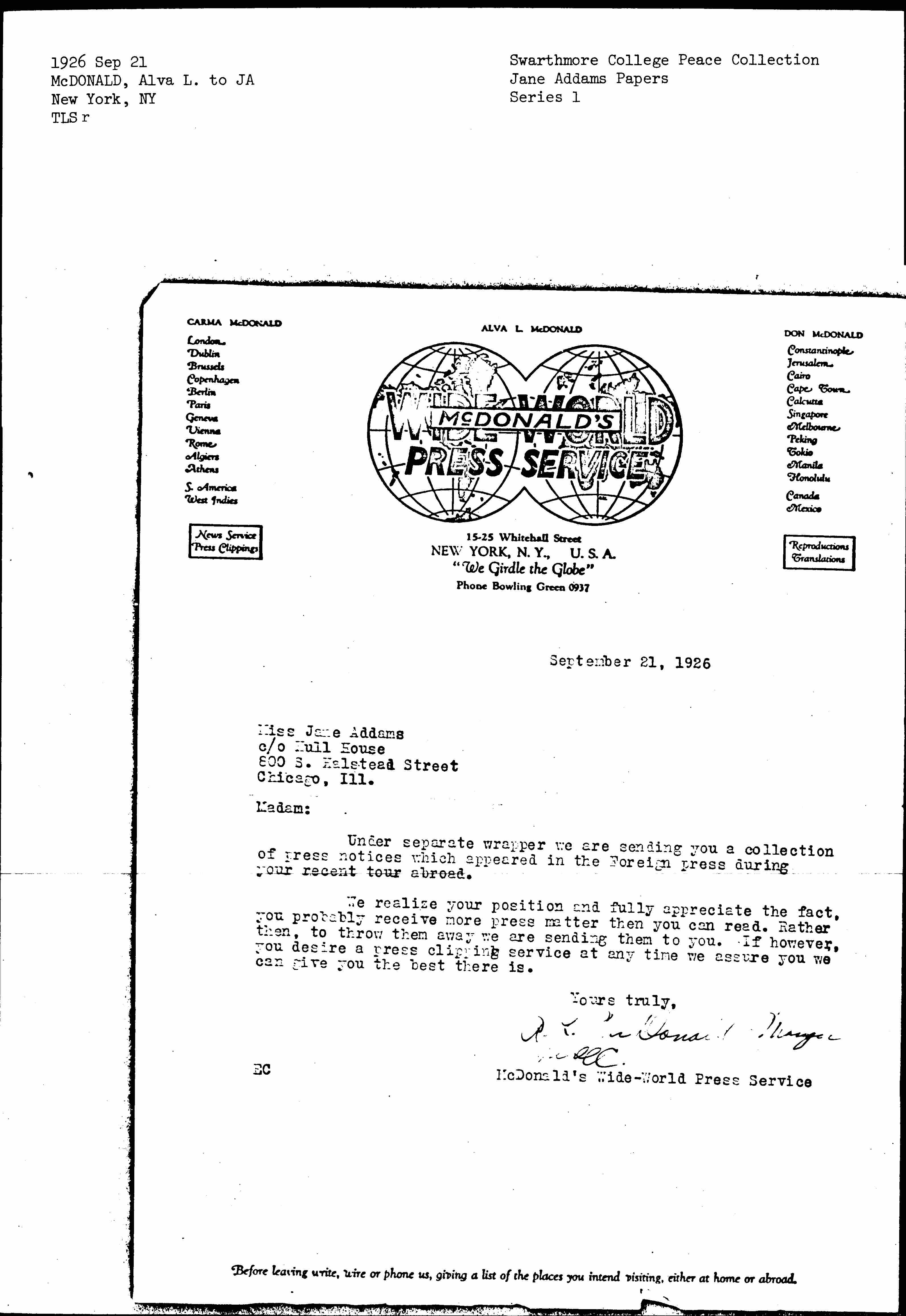 McDONALD'S WIDE-WORLD PRESS SERVICE