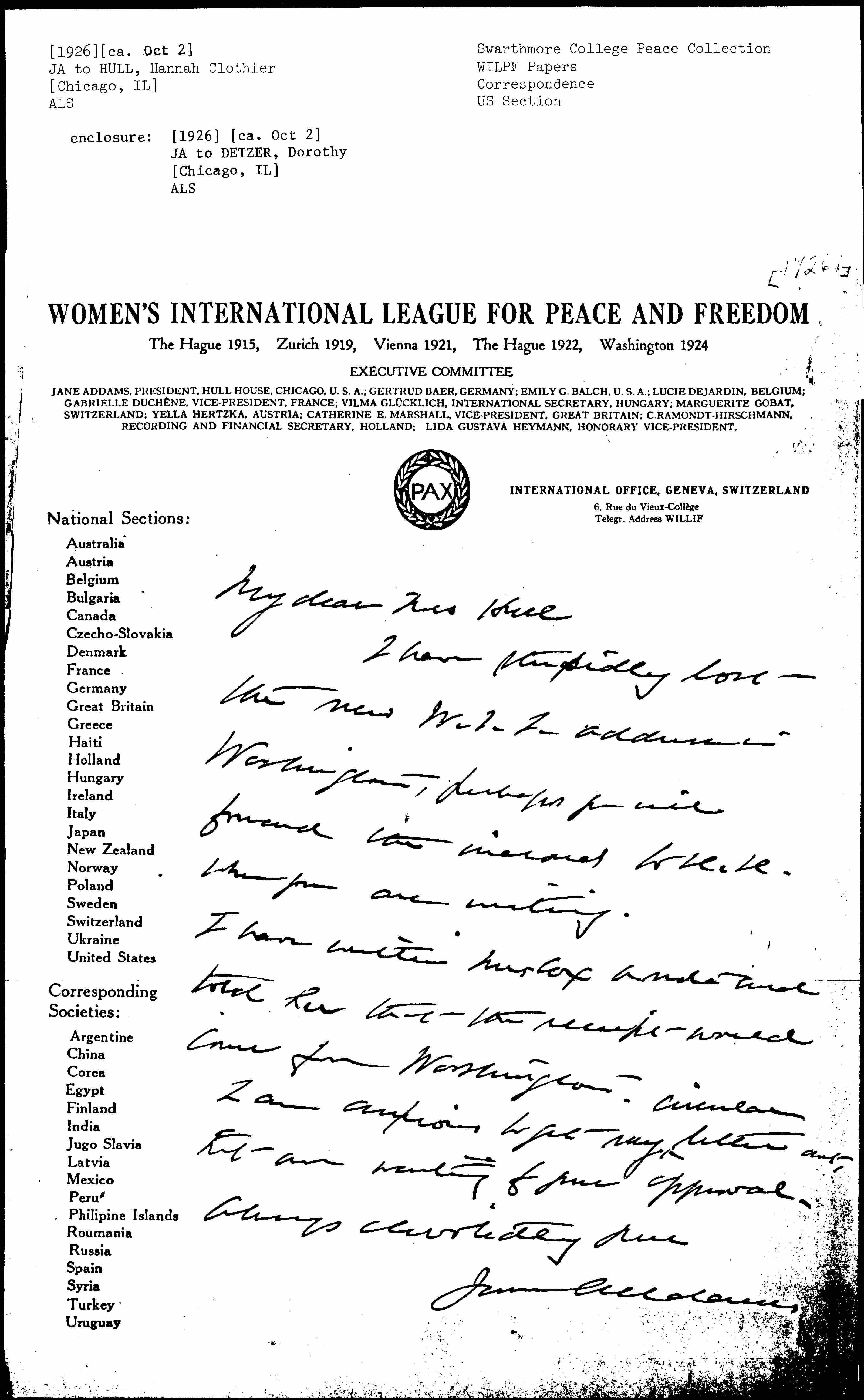 I have stupidly lost the new W.I.L. address in Washington, perhaps you will forward the [enclosed] to D.D. when you are writing.