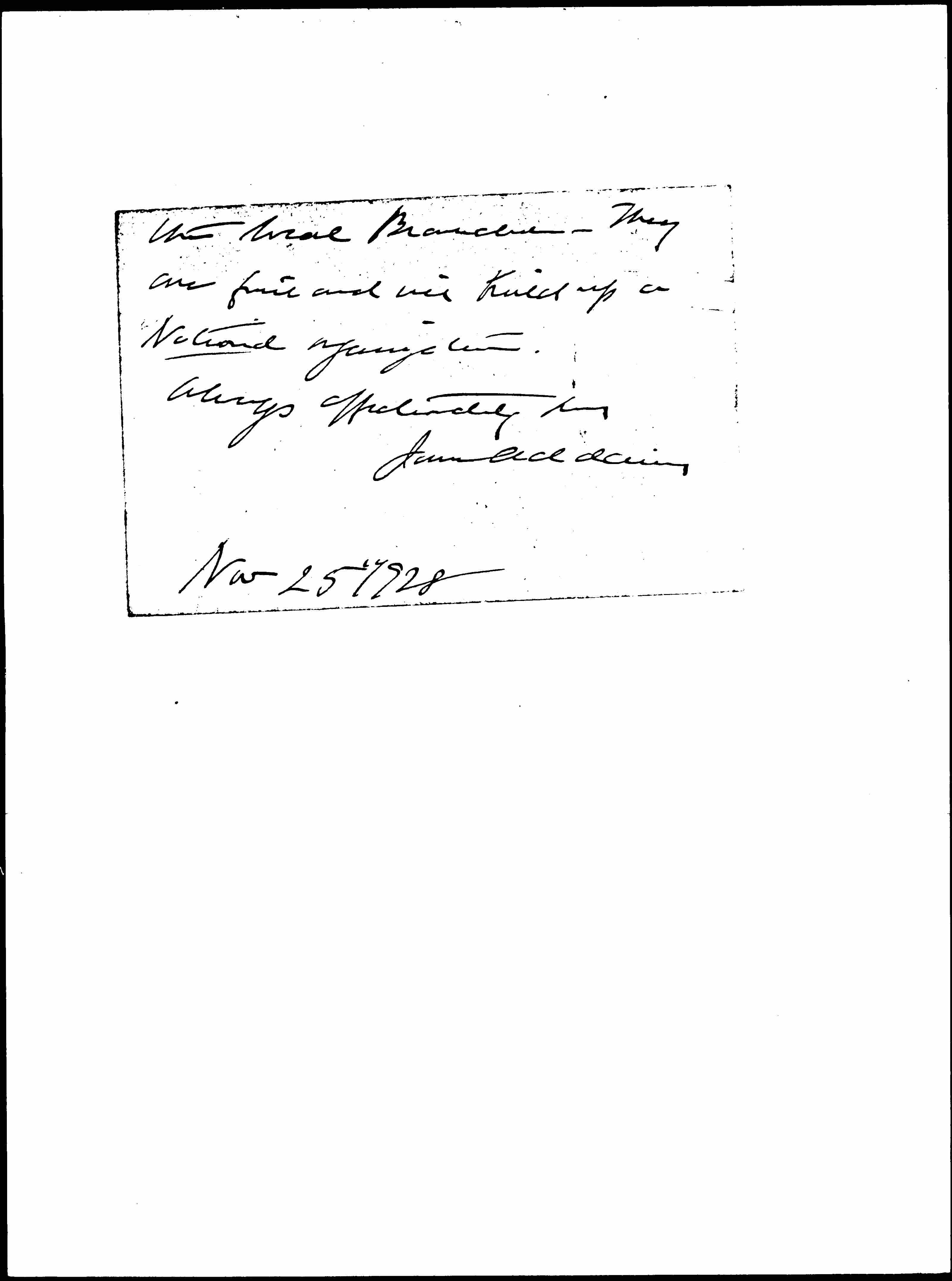 Jane Addams to Dorothy Detzer, November 25, 1928