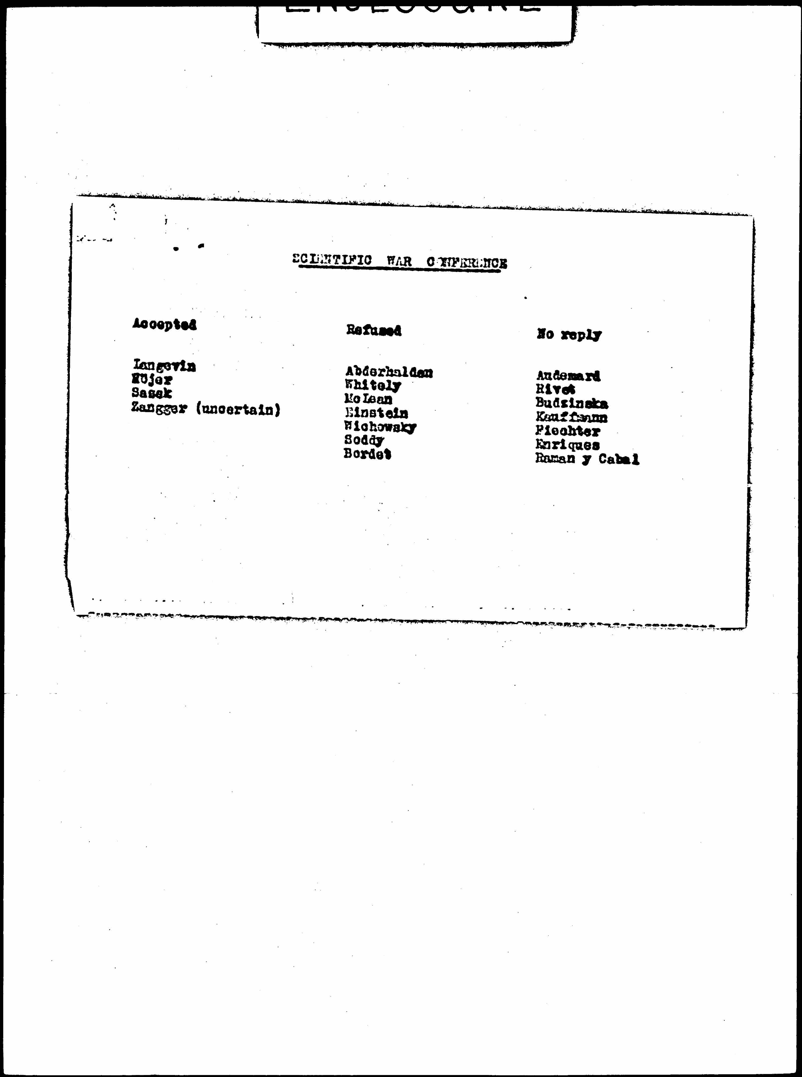 Scientific War Conference Speaker Replies, February 12, 1928