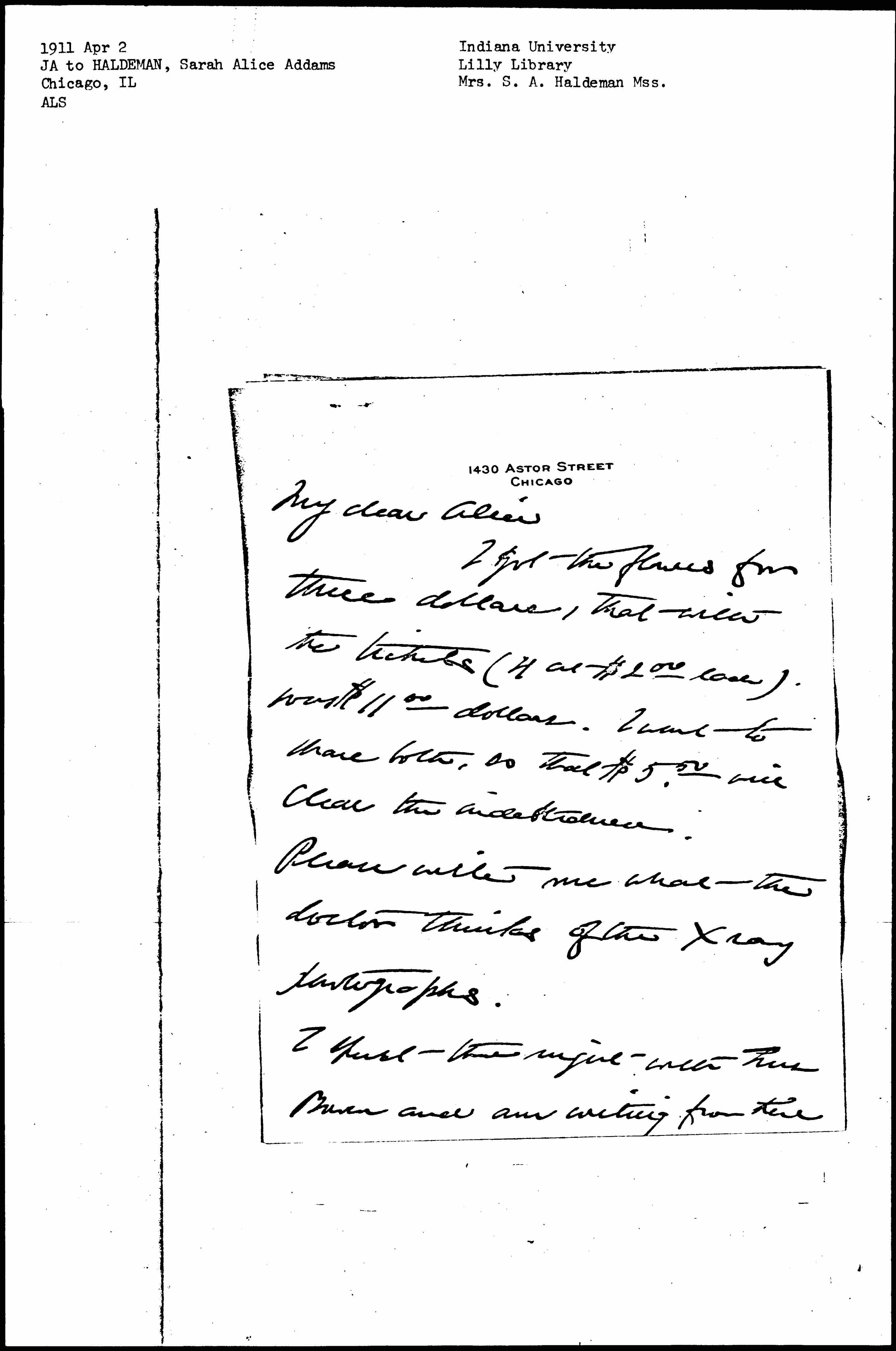 This is only a line, but I will write more soon -- Always your loving sister Jane Addams
