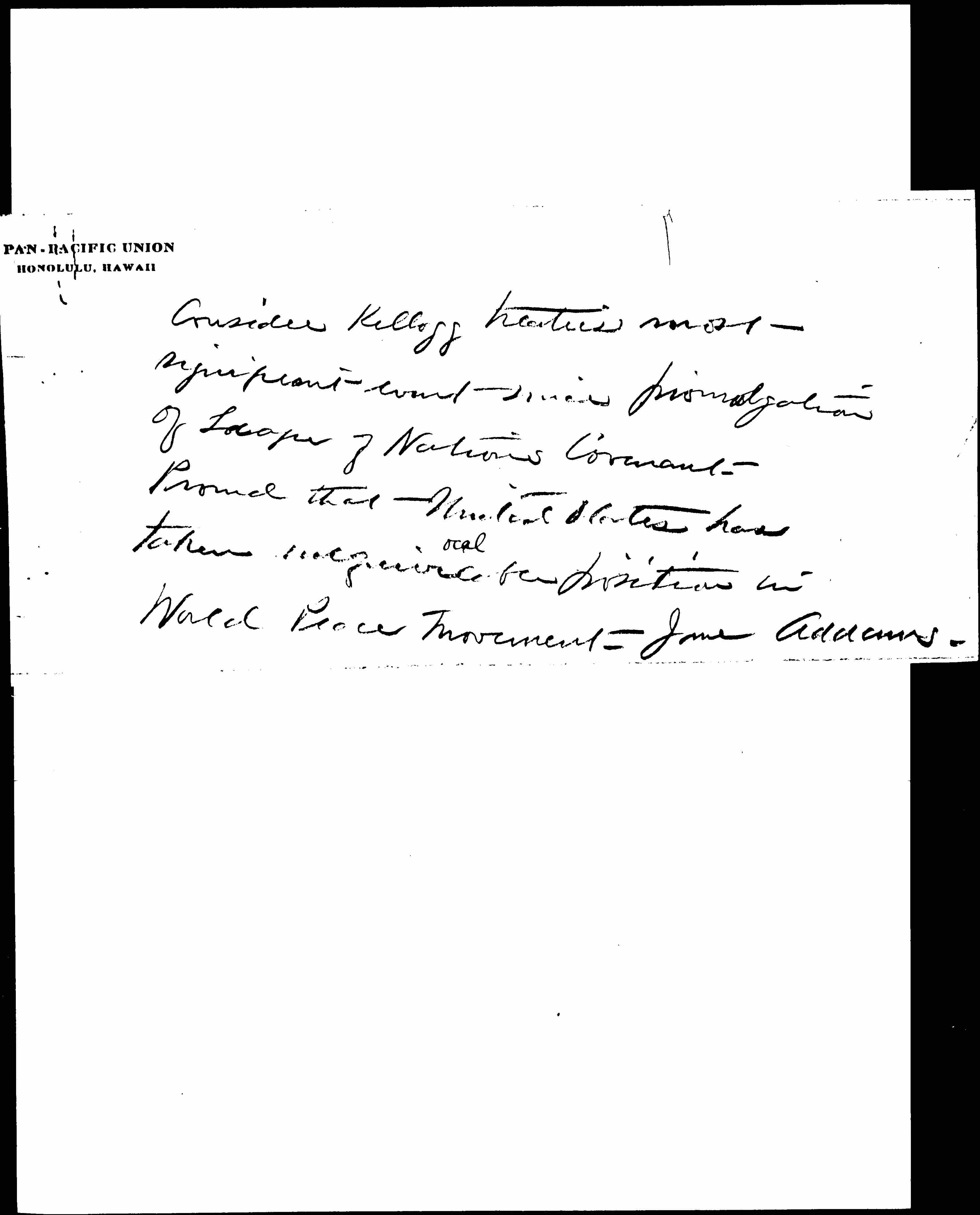 Jane Addams to Christian Science Monitor, August 20, 1928