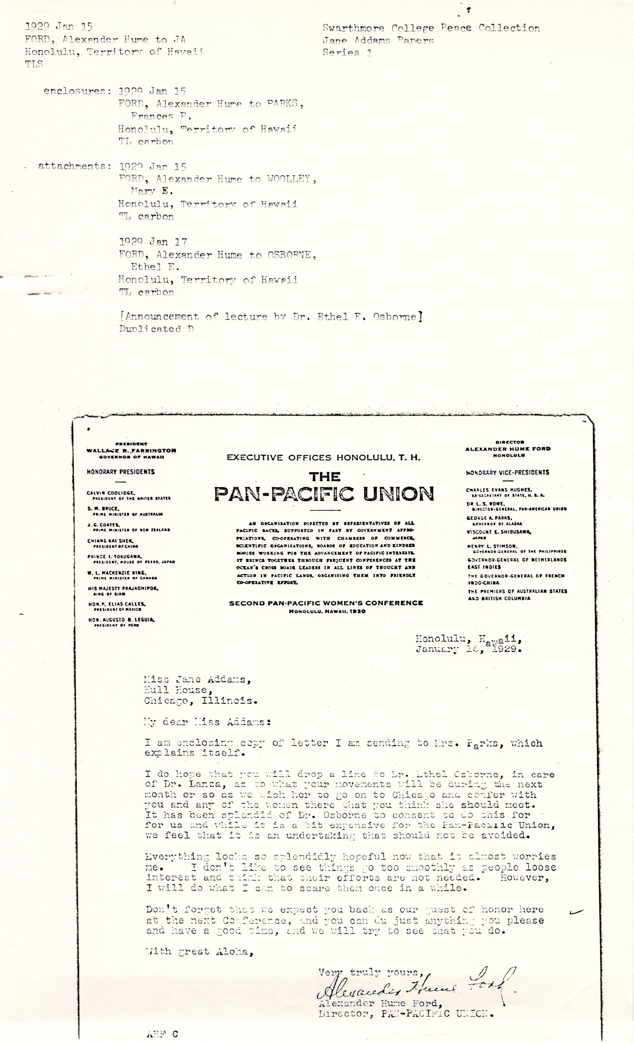 Alexander Hume Ford to Jane Addams, January 15, 1929