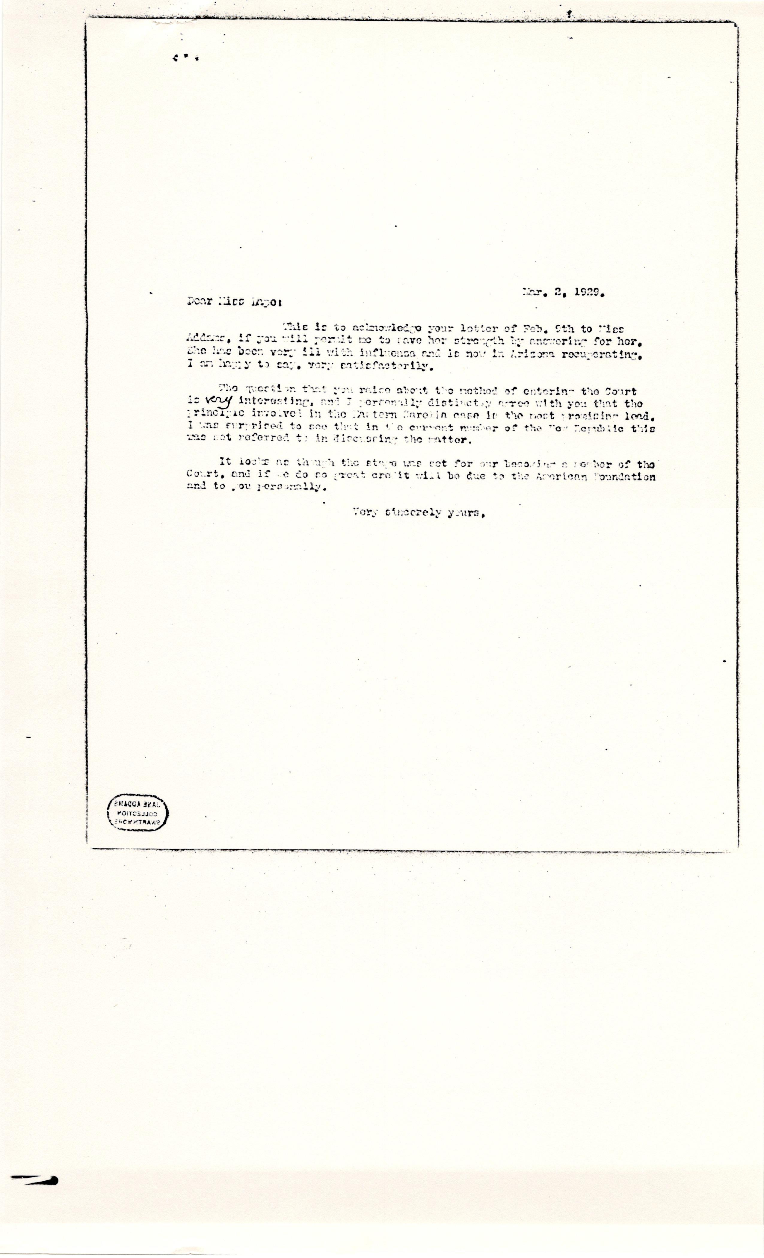 Jane Addams to Esther Everett Lape, March 2, 1929