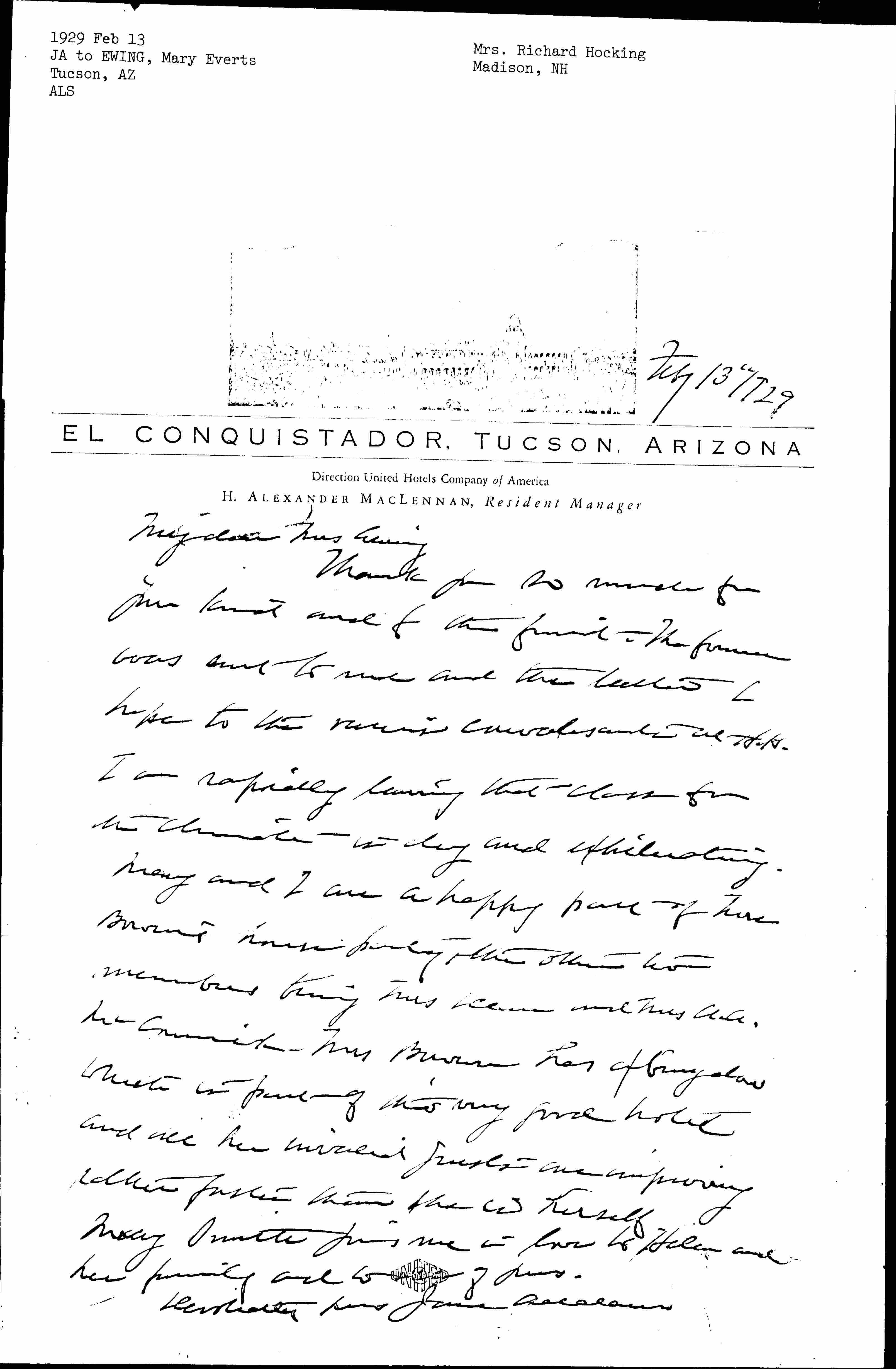 Jane Addams to Mary Everts Ewing, February 13, 1929