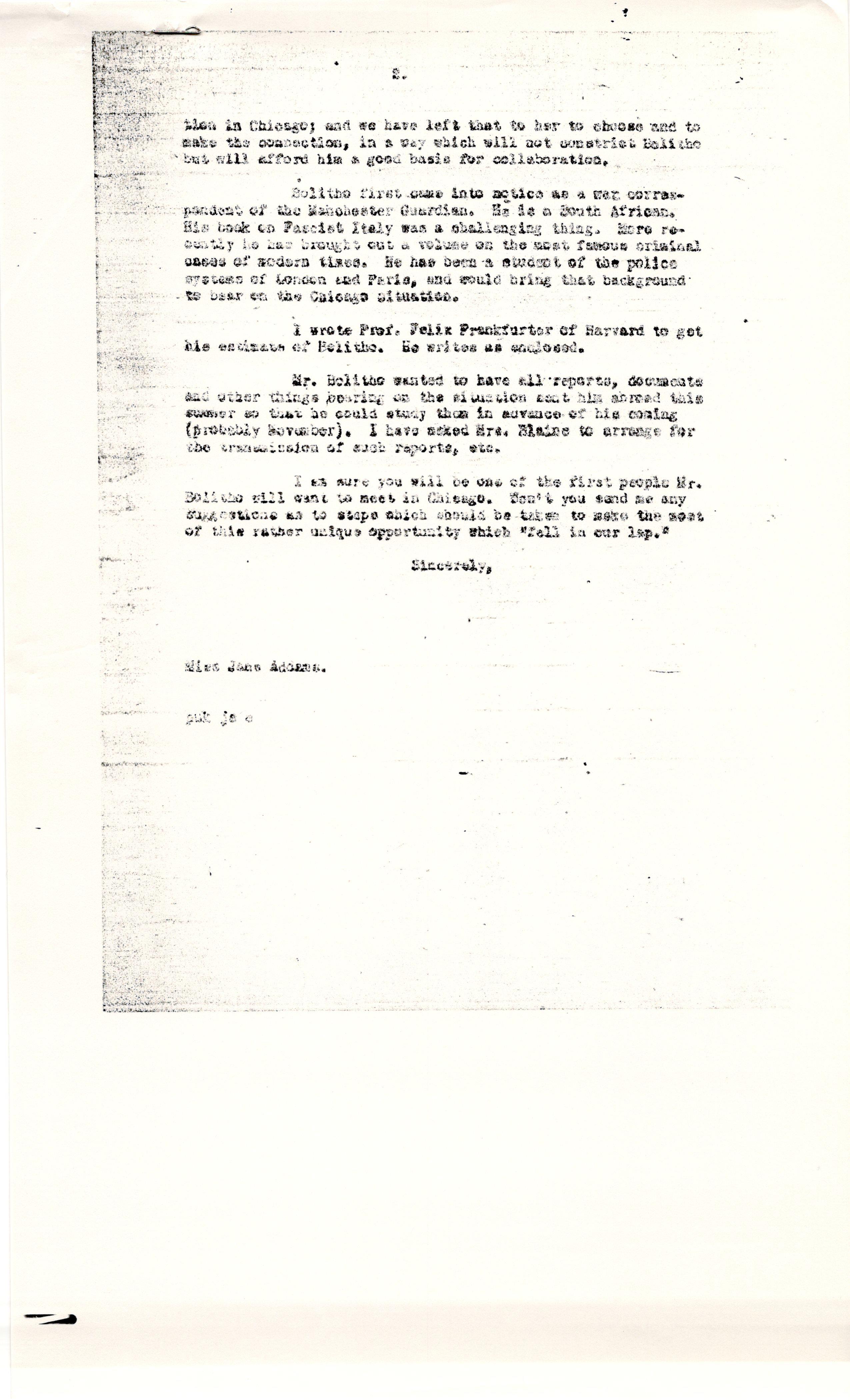 Jane Addams to Paul Underwood Kellogg, May 5, 1929