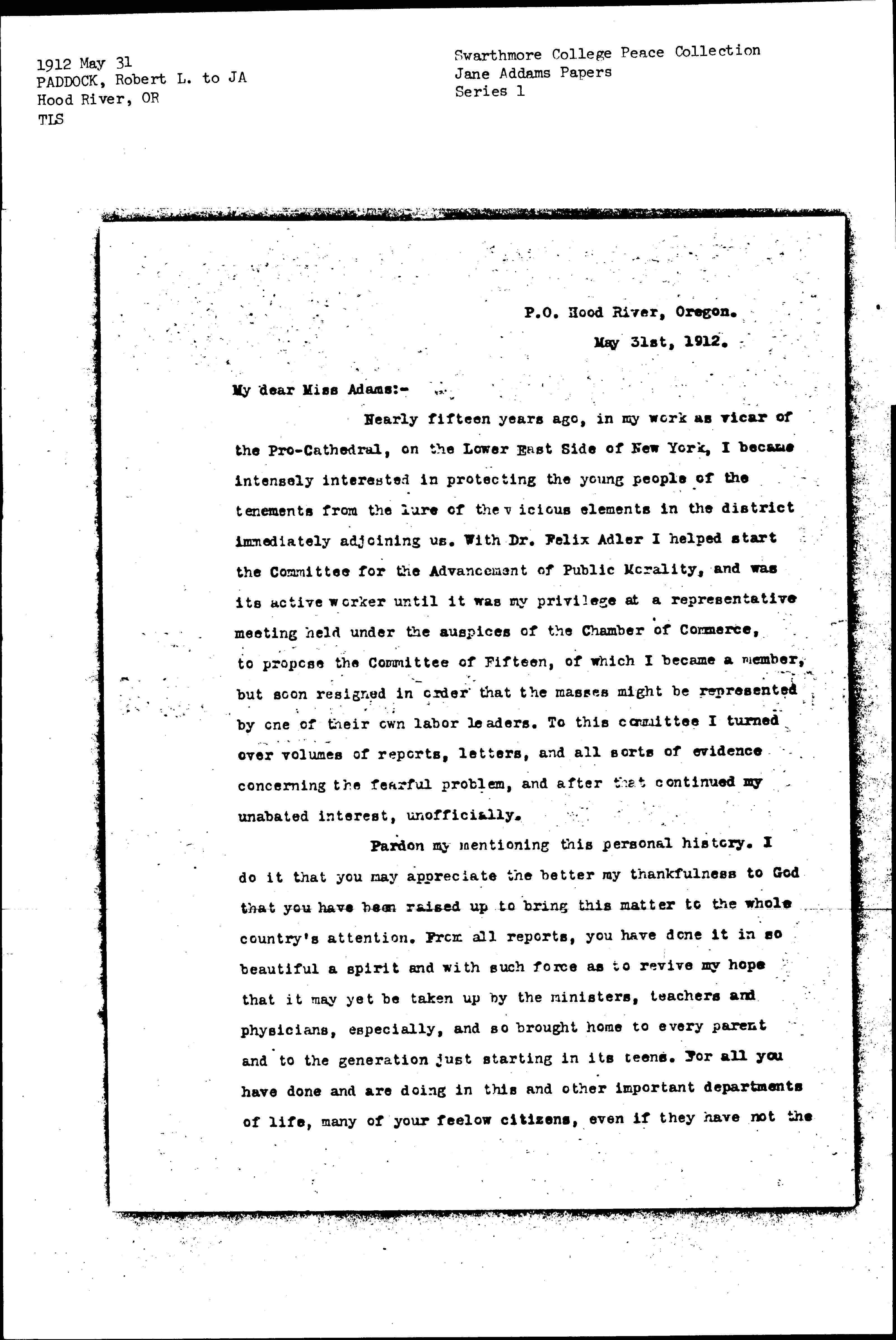 Pardon my mentioning this personal history. I do it that you may appreciate the better my thankfulness to God that you have been raised up to bring this matter to the whole country's attention. From all reports, you have done it in so beautiful a spirit and with such force as to revive my hope that it may yet be taken up by the ministers, teachers and physicians, especially, and so brought home to every parent and to the generation just starting in its teens. For all you have done and are doing in this and other important departments of life, many of your [fellow] citizens, even if they have not the [page 2] courage to write and tell you, are most grateful.