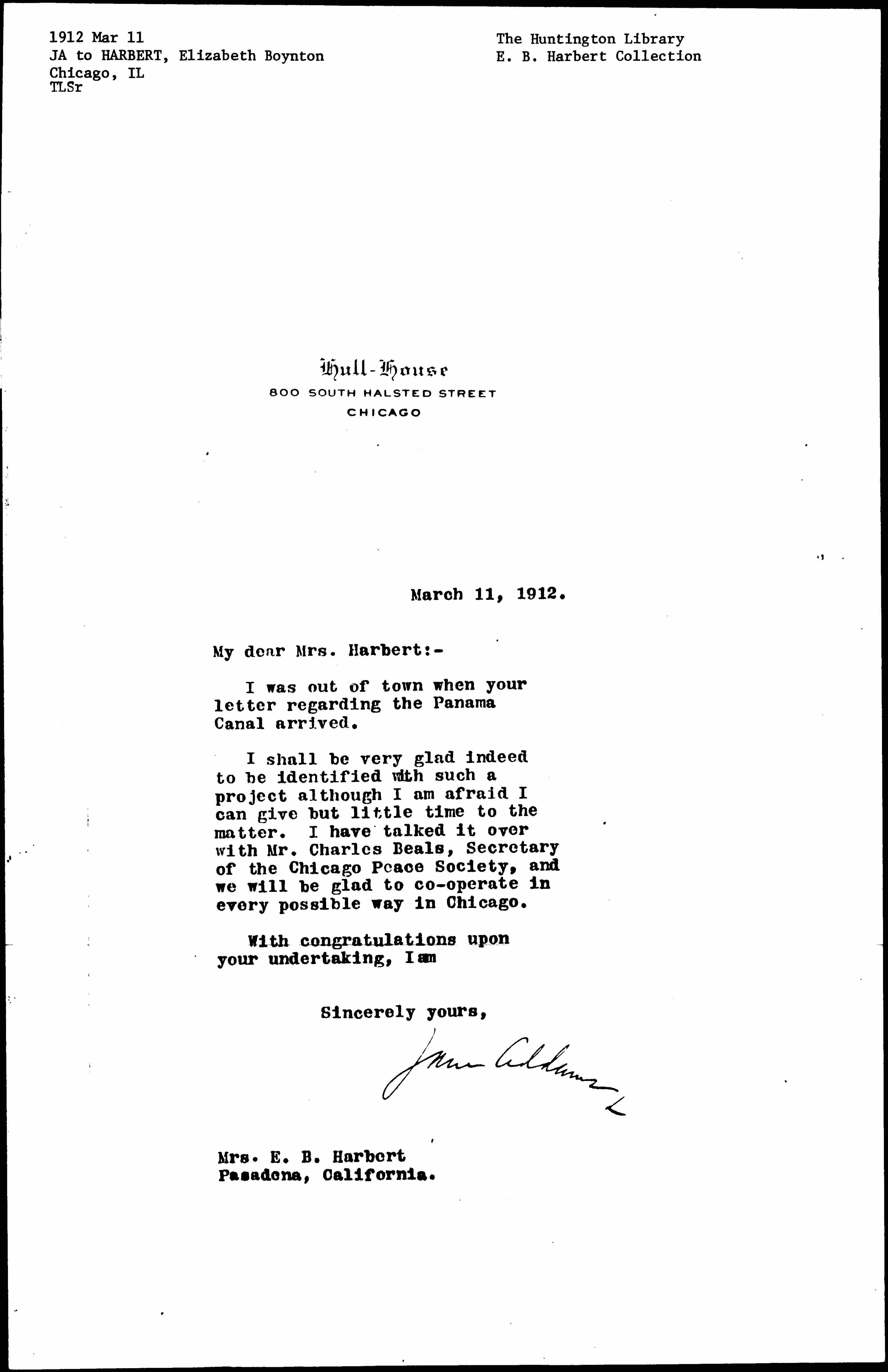 Jane Addams [signed]