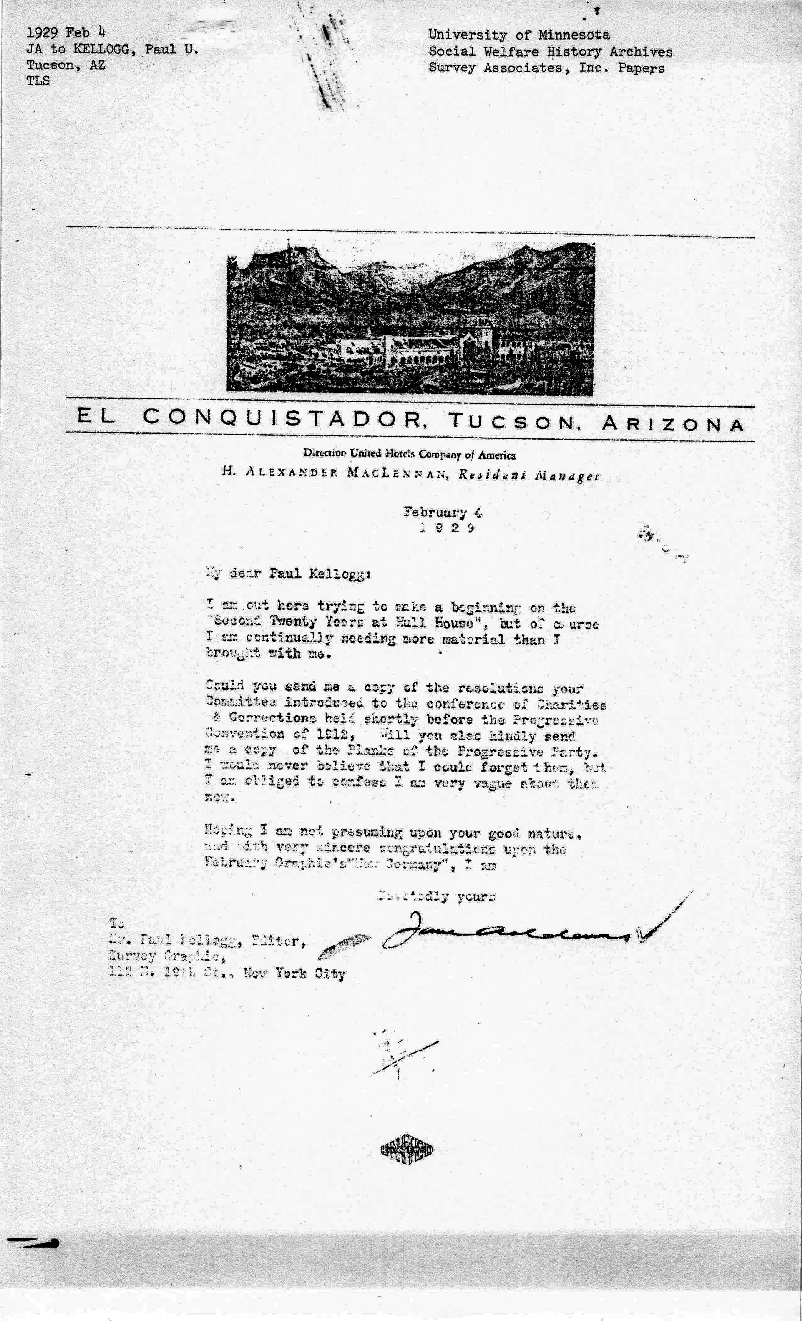 Jane Addams to Paul Underwood Kellogg, February 4, 1929