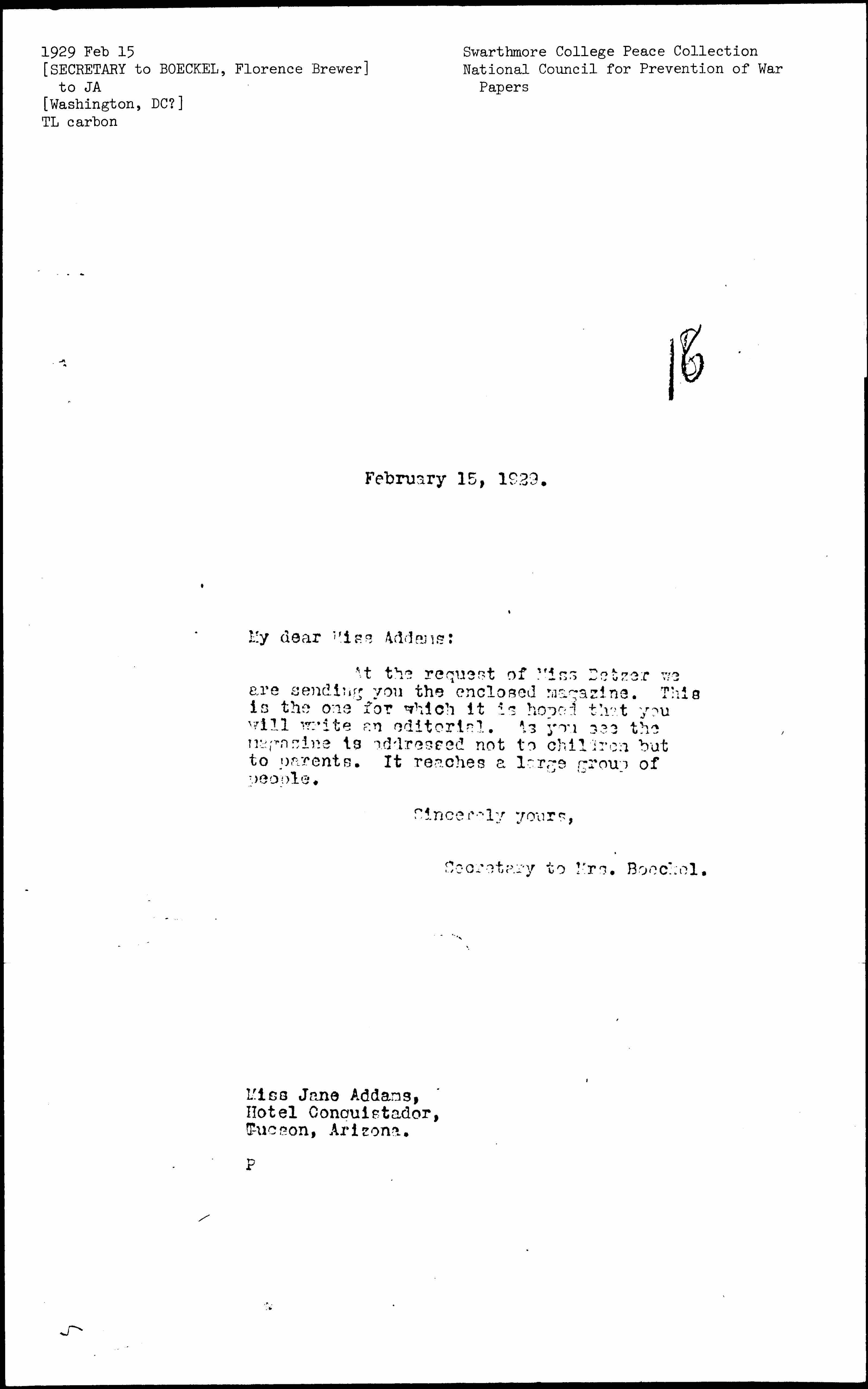 Florence Brewer Boeckel to Jane Addams, February 15, 1929