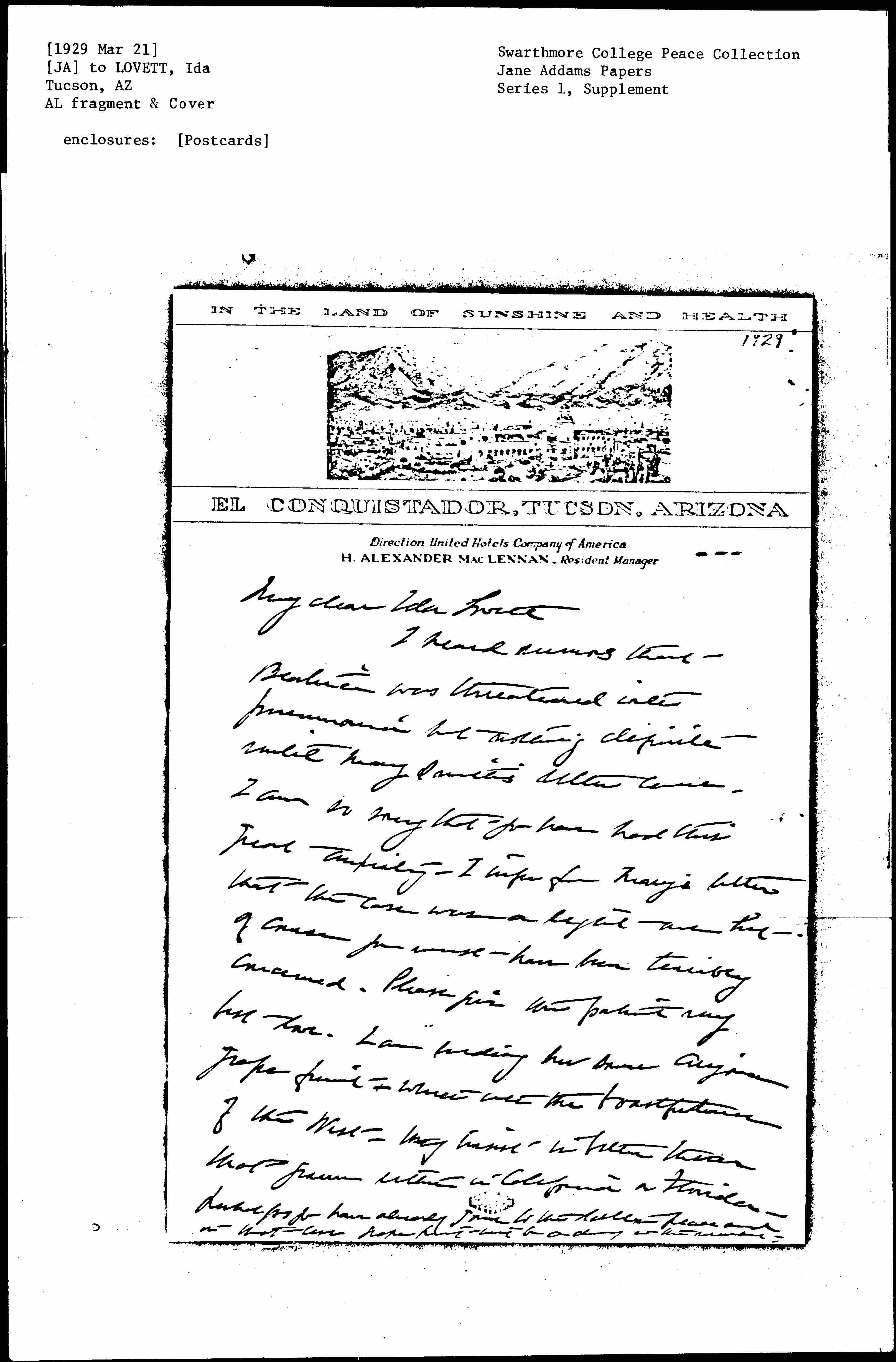 Jane Addams to Ida Campbell Mott-Smith Lovett, March 21, 1929