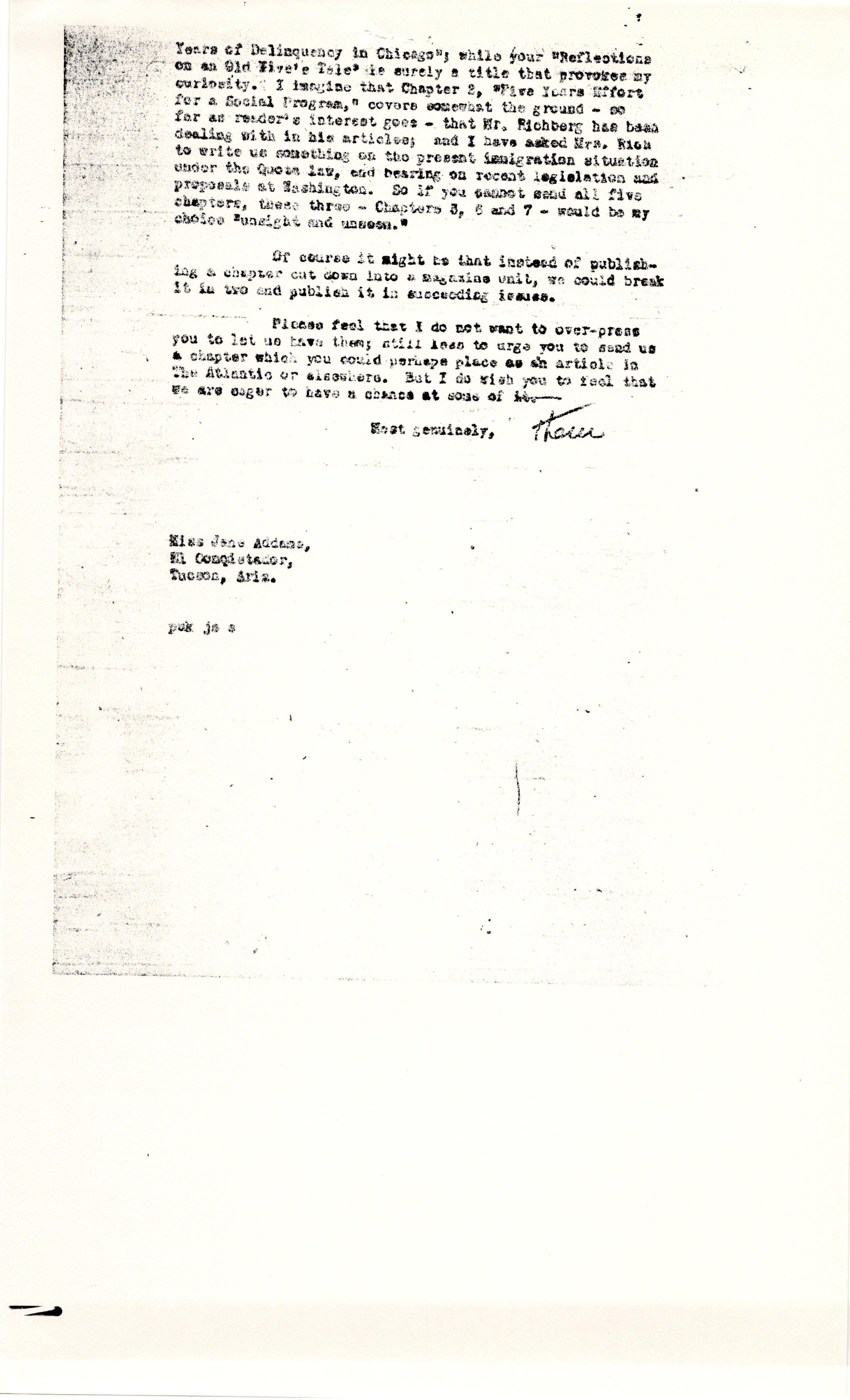 Paul Underwood Kellogg to Jane Addams, April 5, 1929