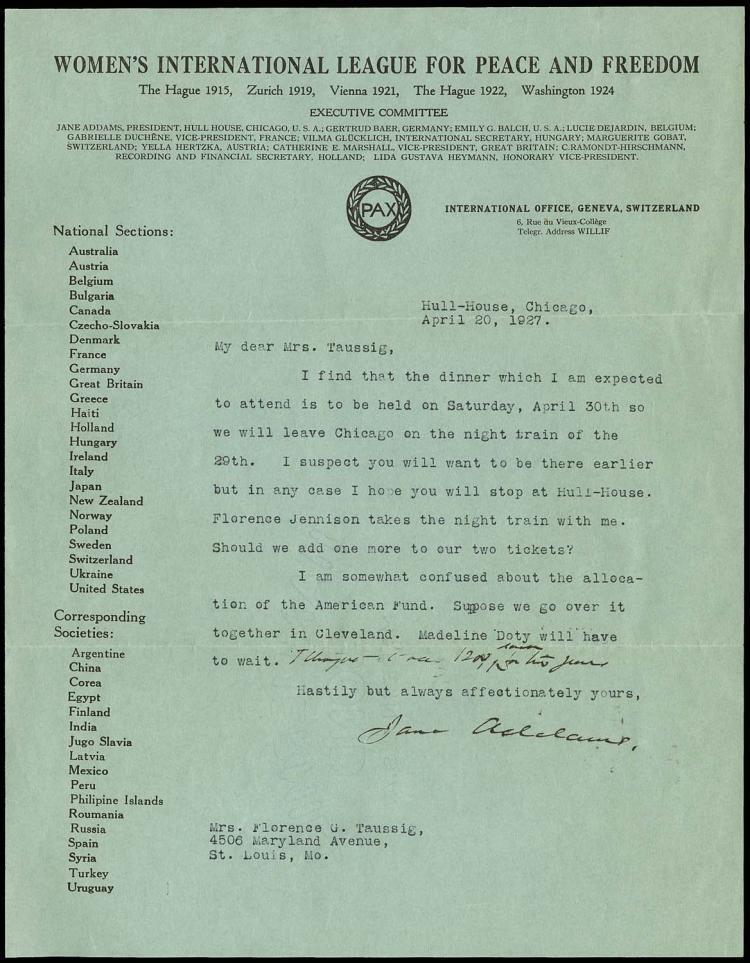 Jane Addams, [signed]