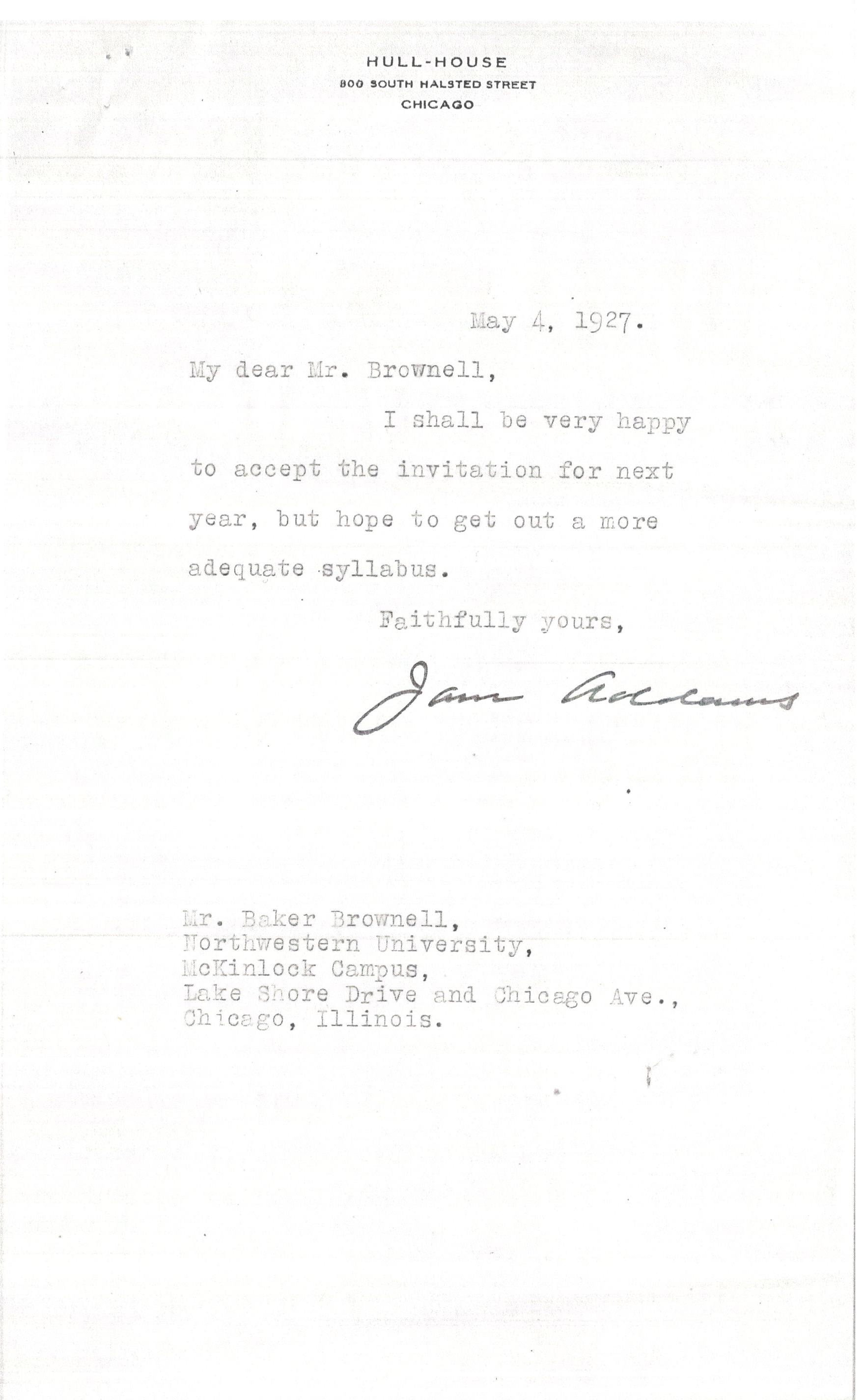Jane Addams [signed]