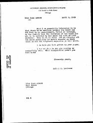 Salmon Oliver Levinson to Jane Addams, April 19, 1929