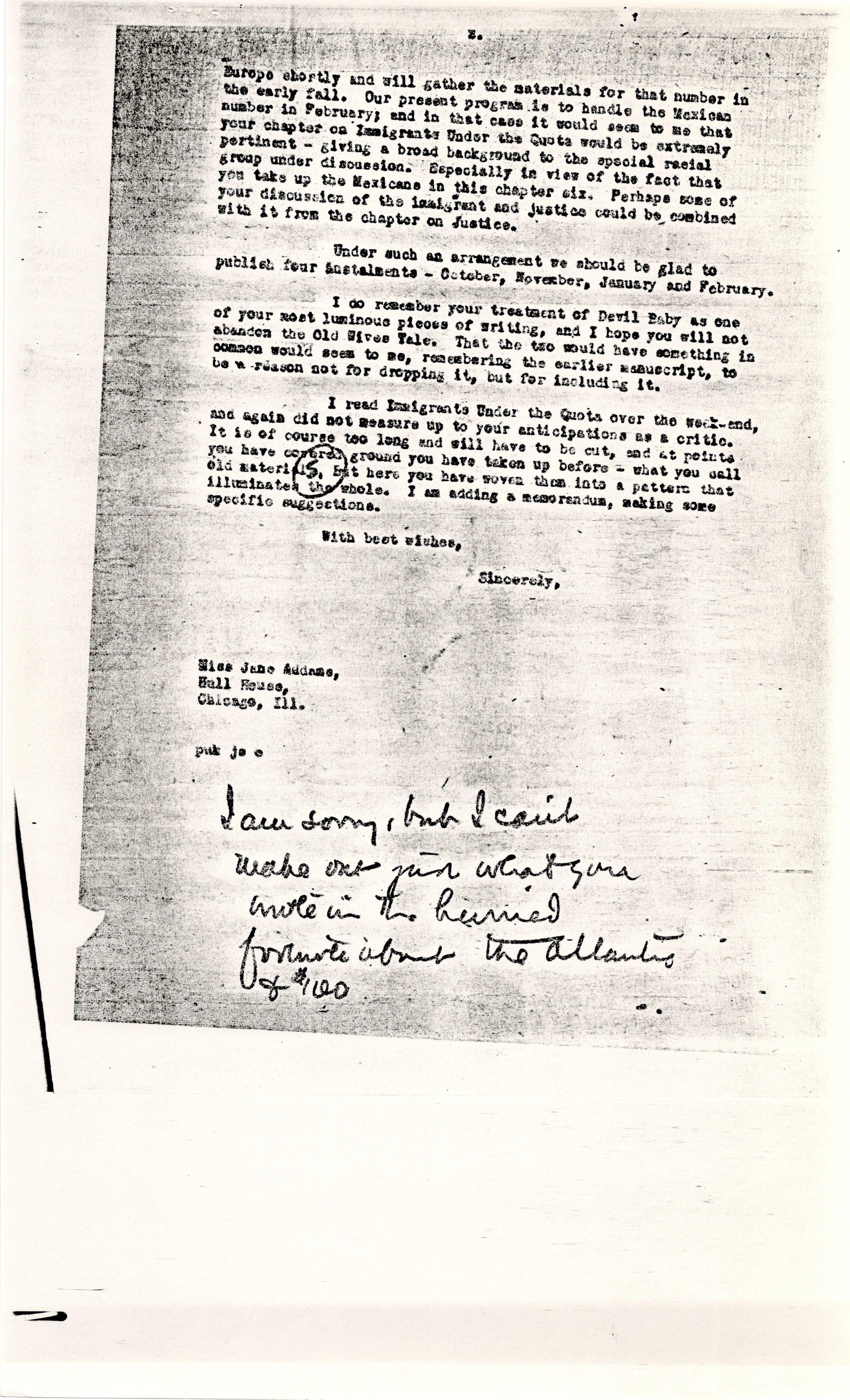 Jane Addams to Paul Underwood Kellogg, May 19, 1929