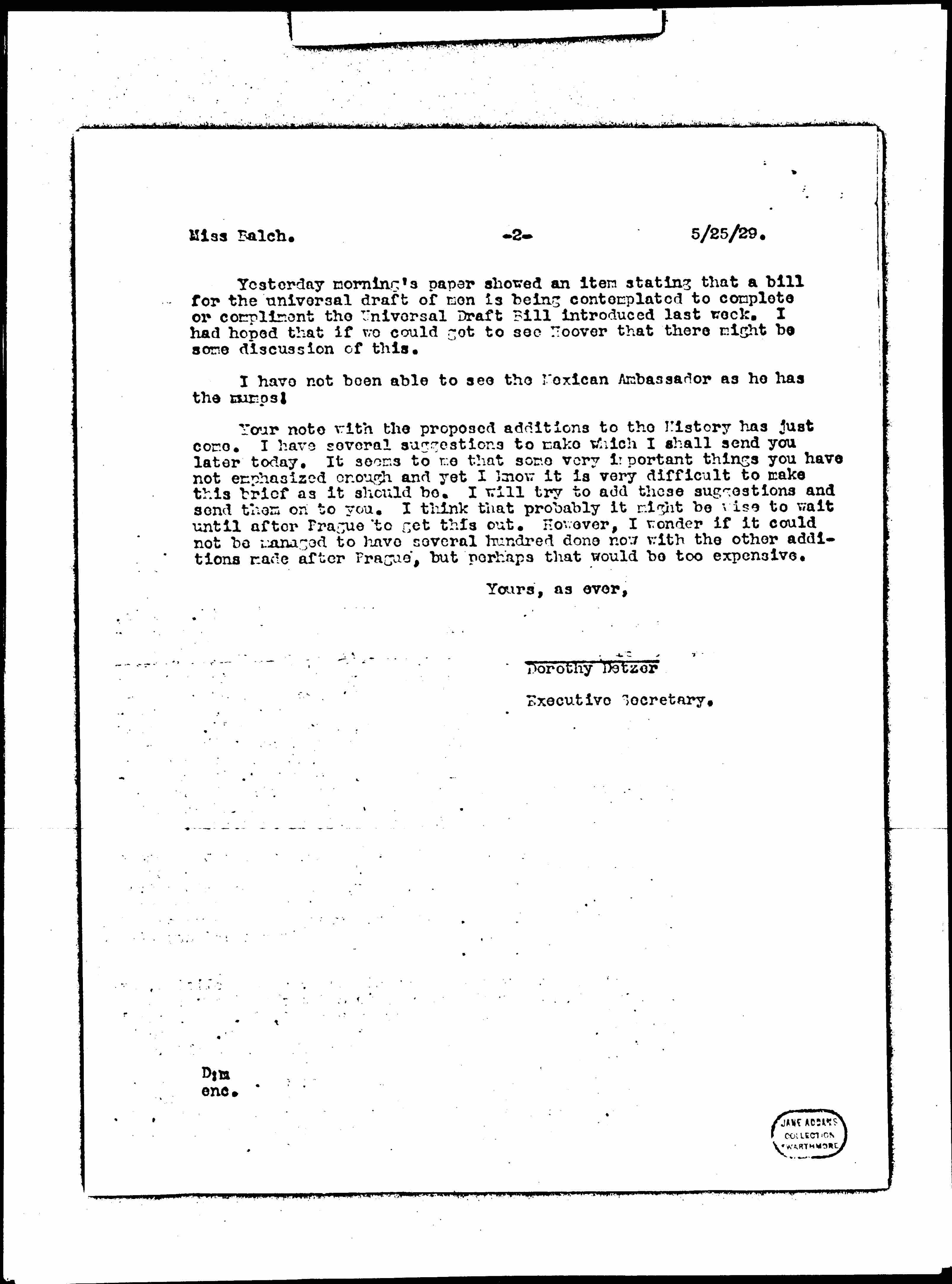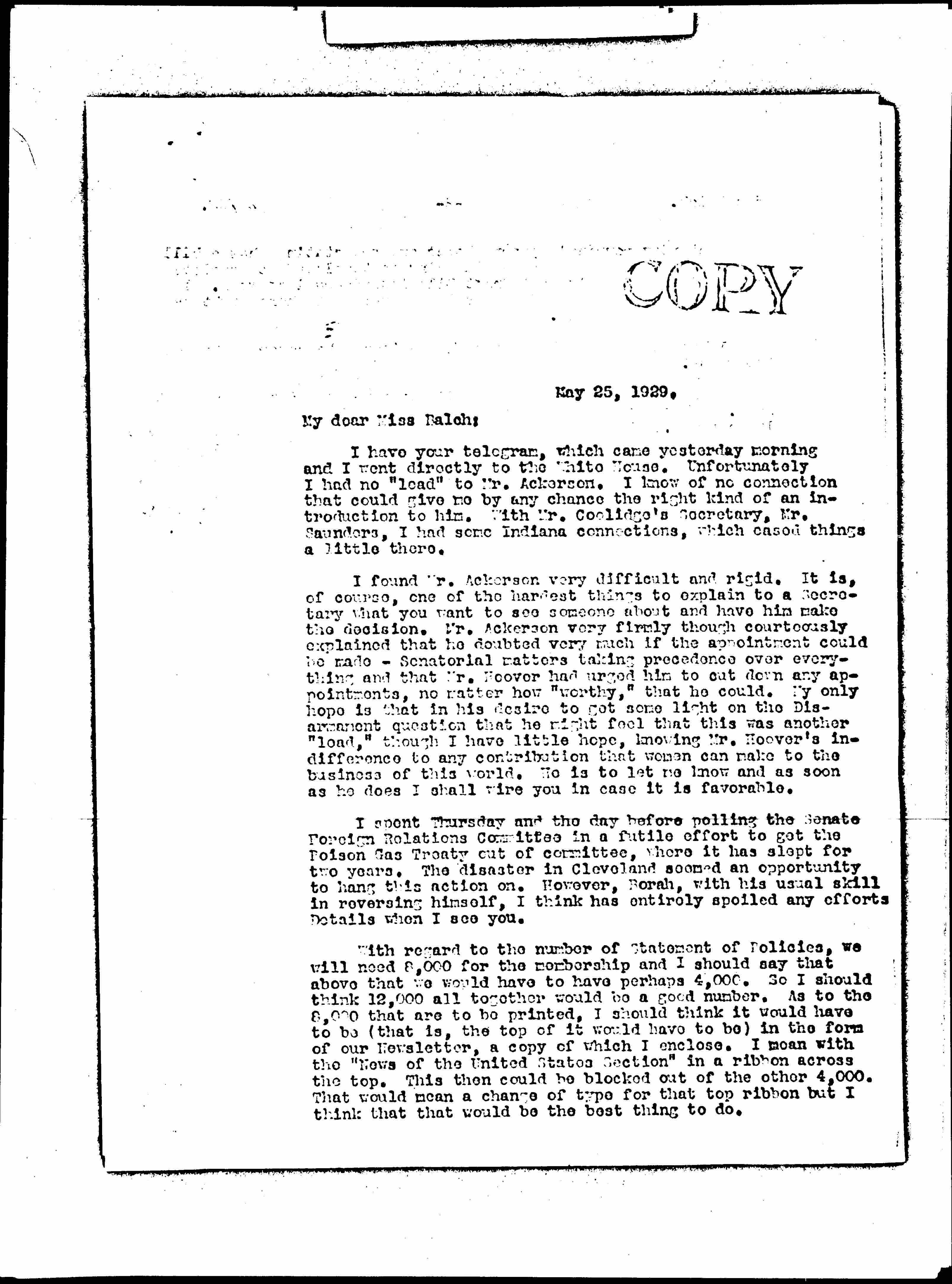 Dorothy Detzer to Emily Greene Balch, May 25, 1929