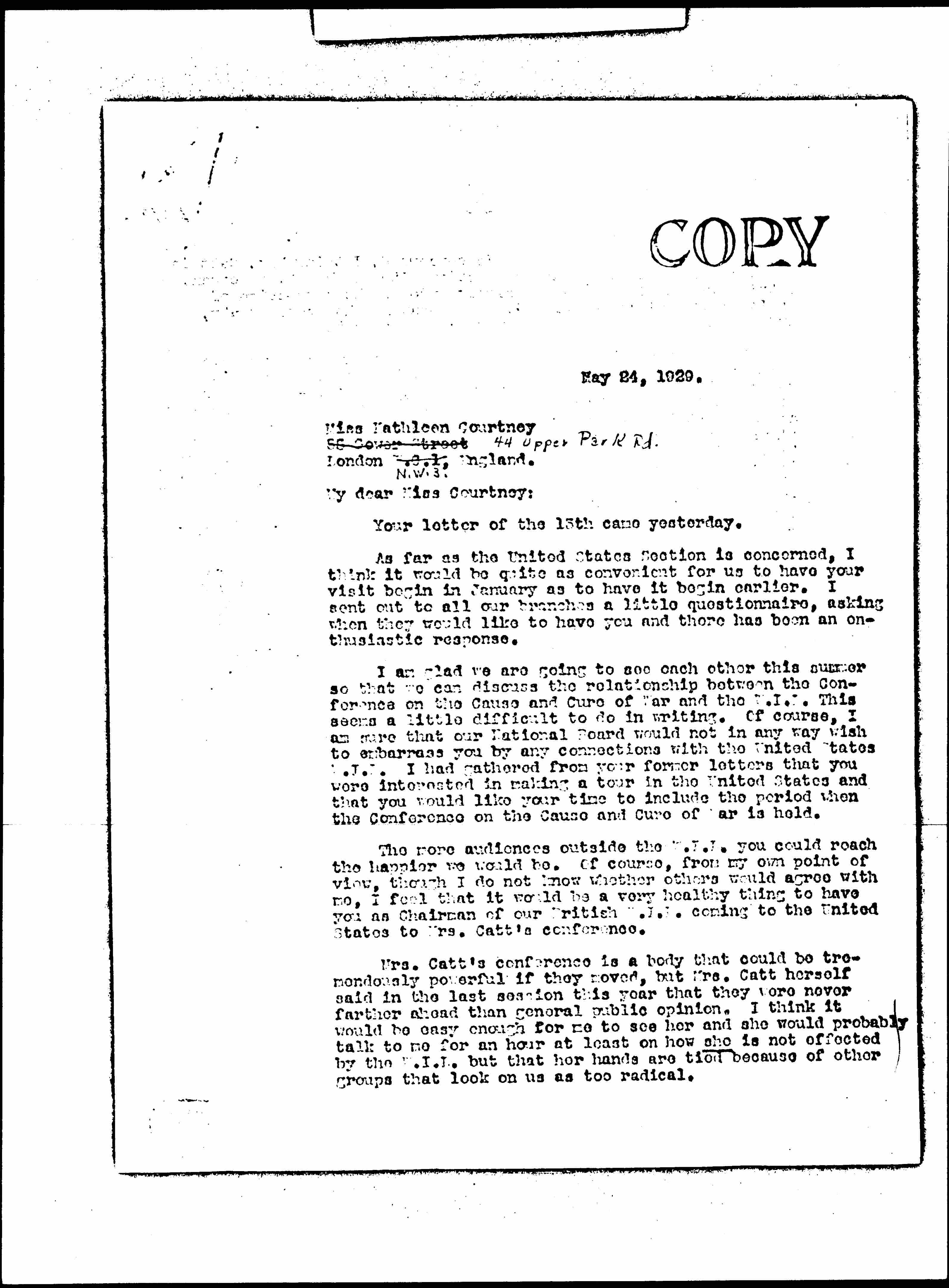 Dorothy Detzer to Kathleen D'Olier Courtney, May 24, 1929