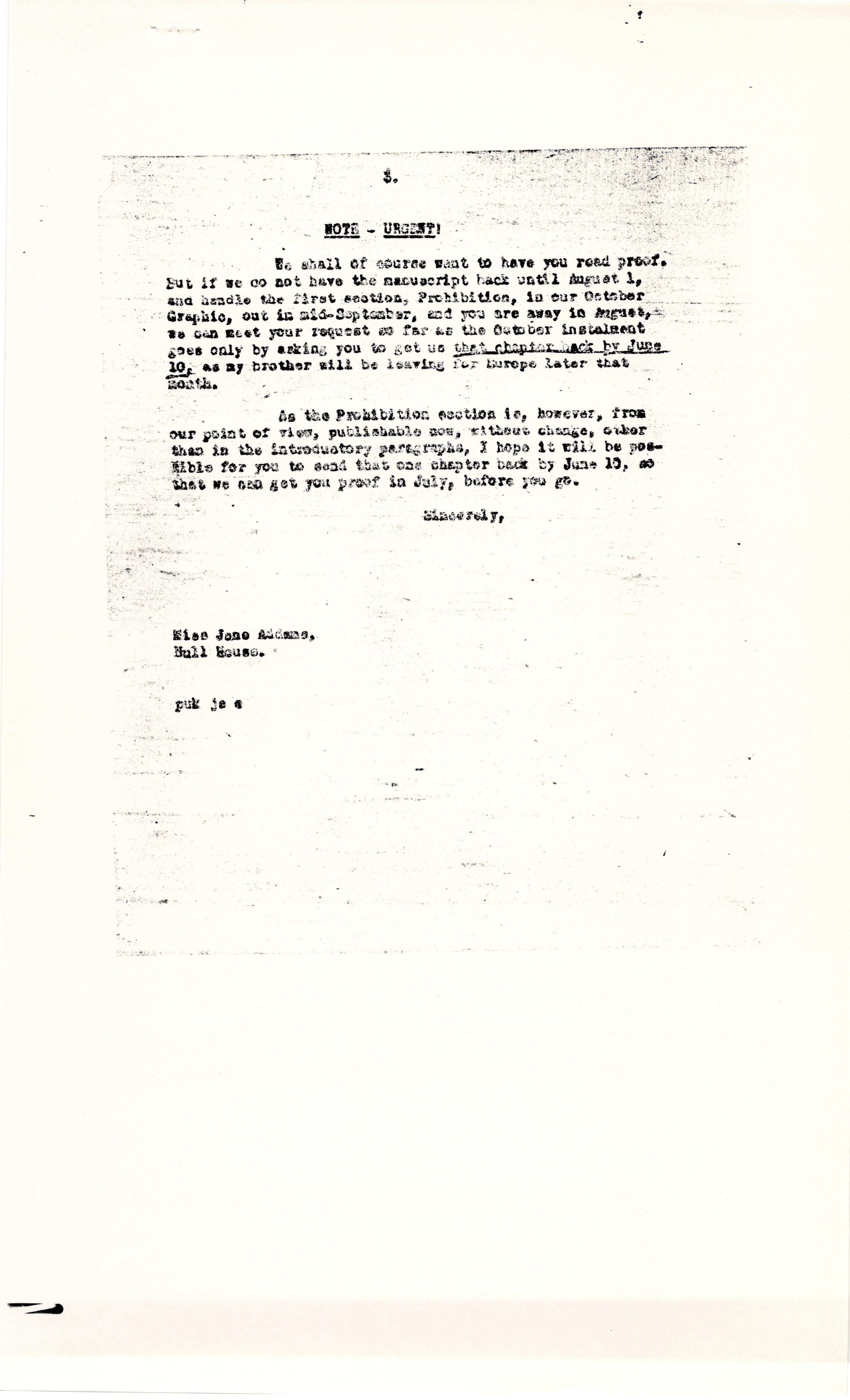Paul Underwood Kellogg to Jane Addams, May 25, 1929