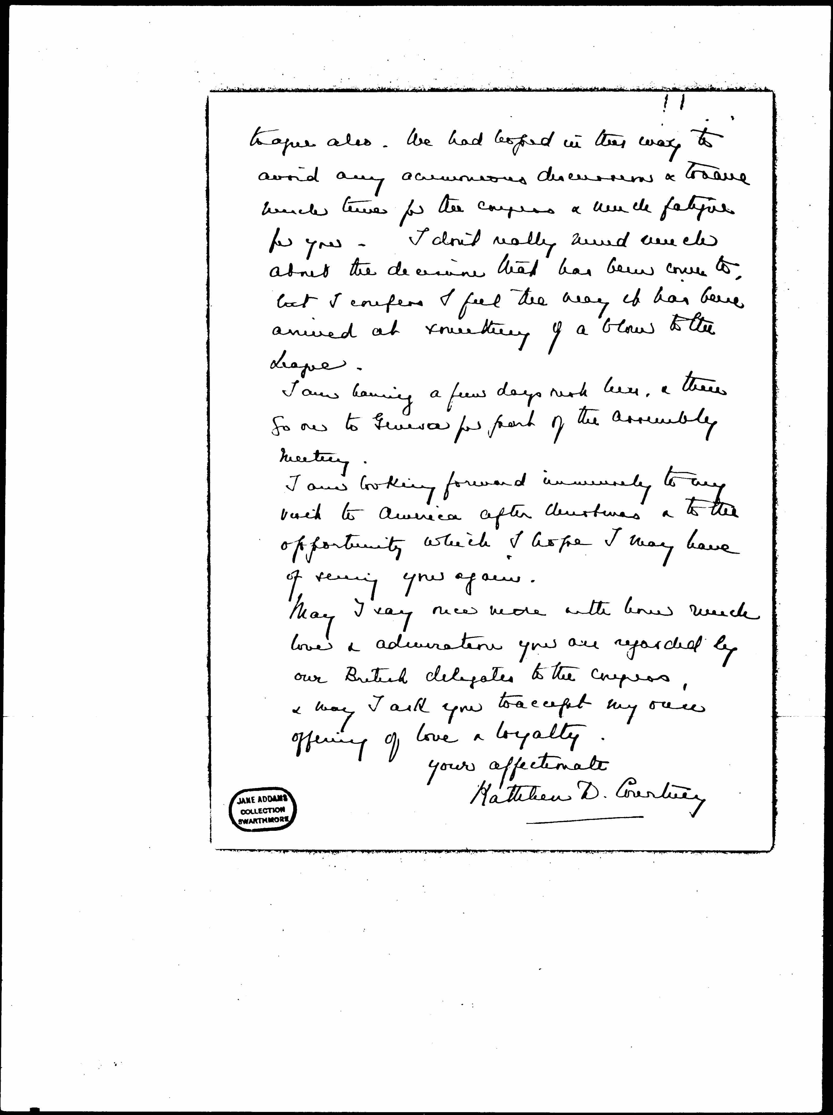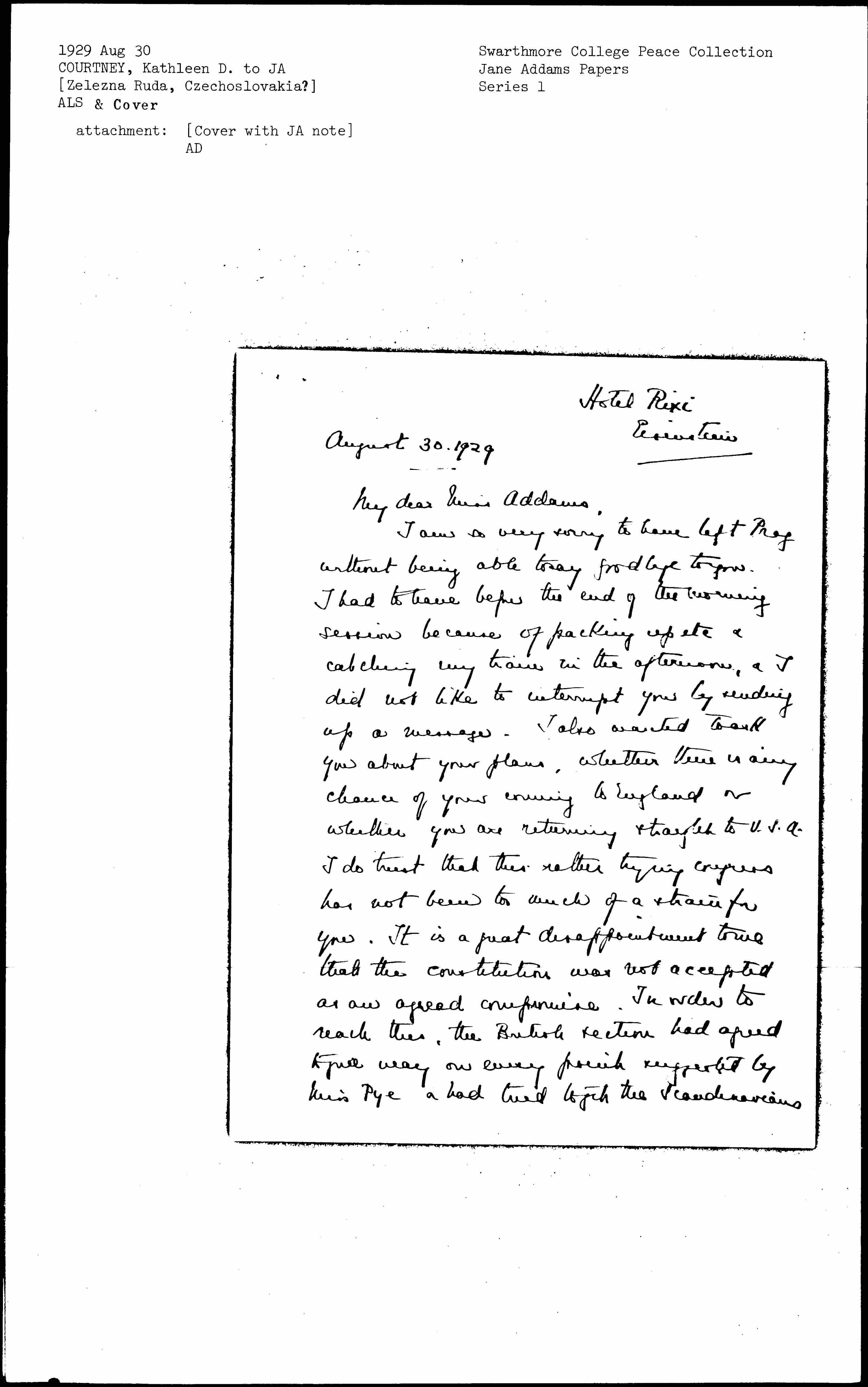 Kathleen D'Olier Courtney to Jane Addams, August 30, 1929