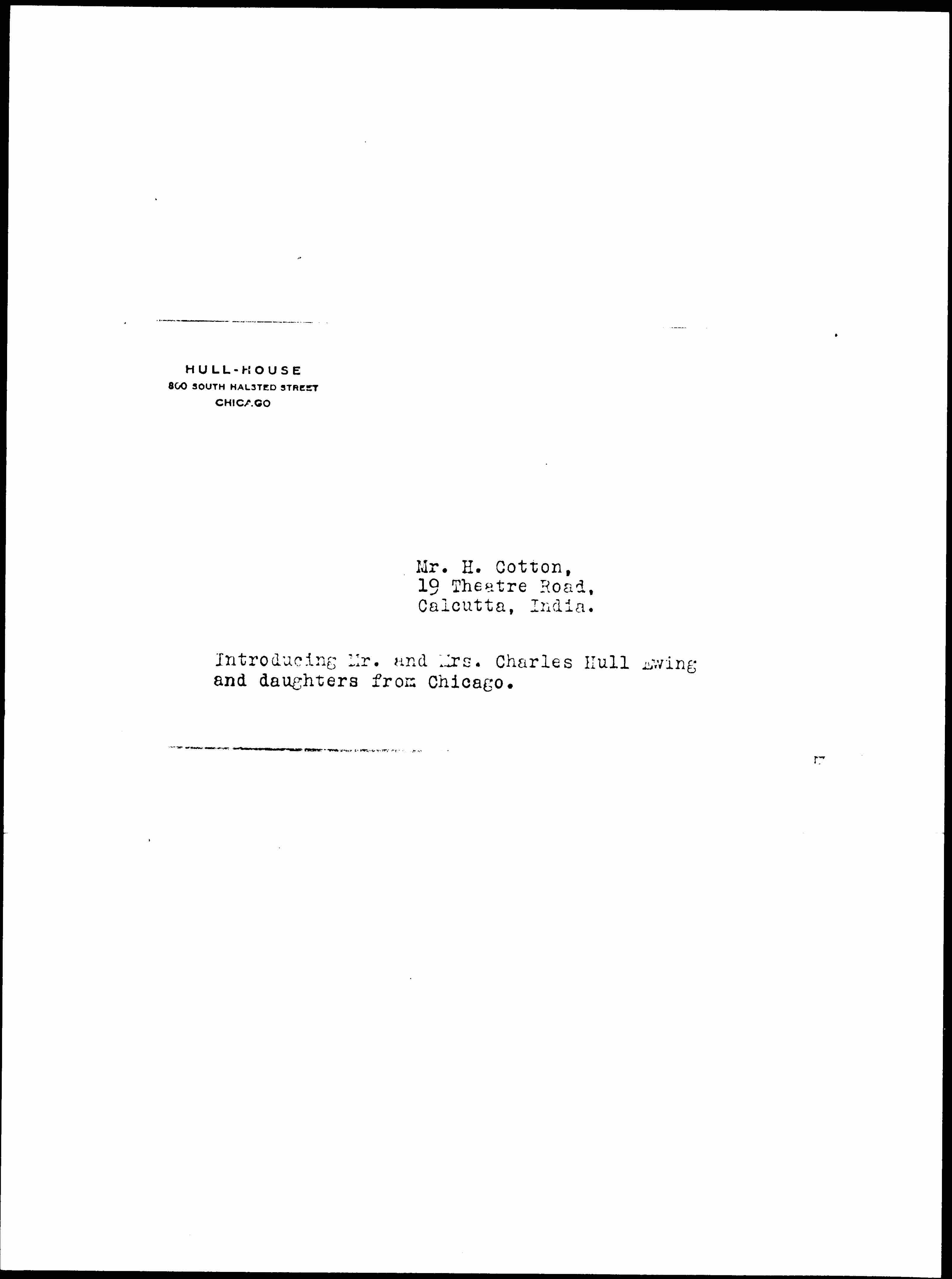 Jane Addams to Harry Evan Cotton, October 8, 1929
