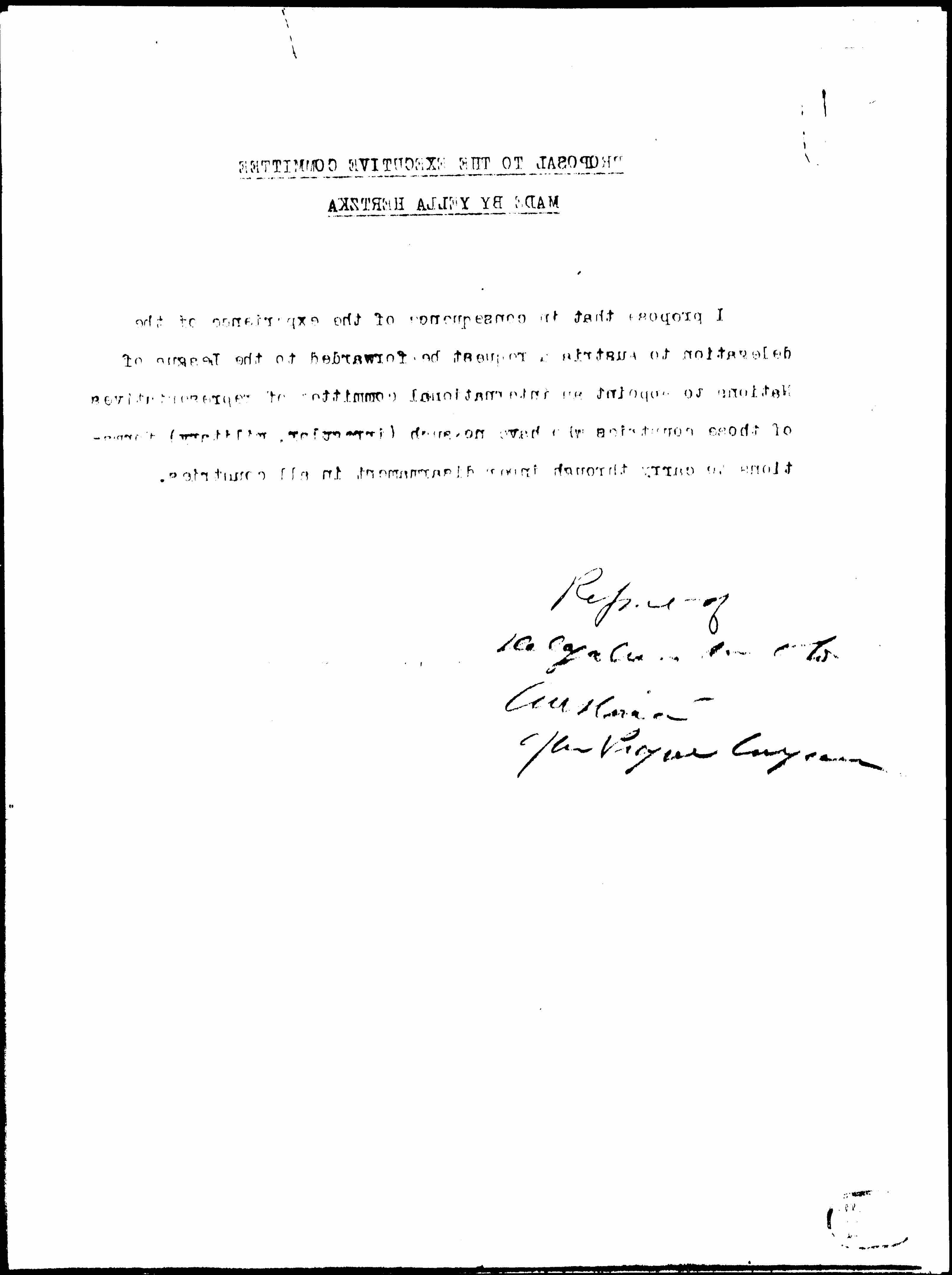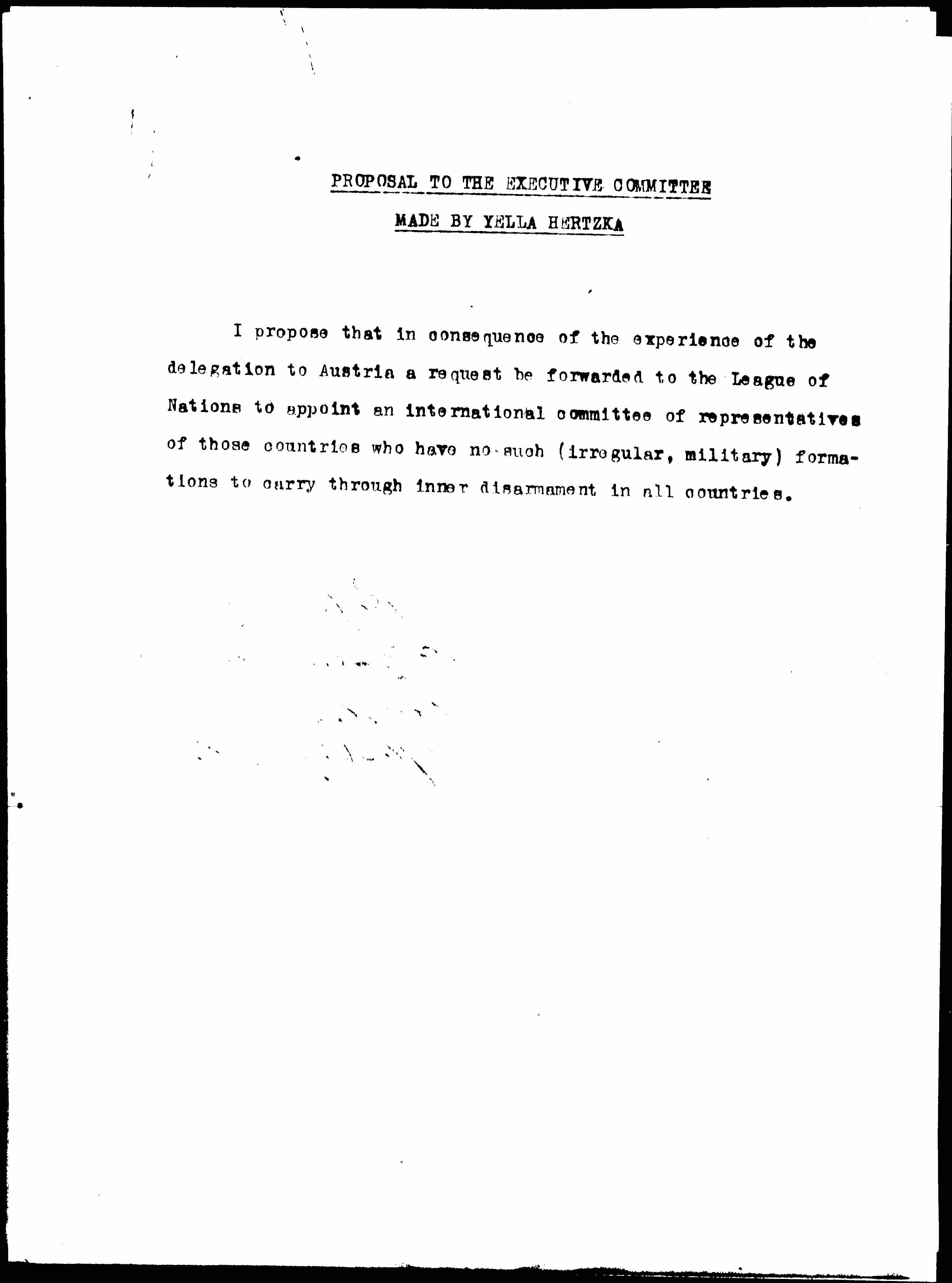 Proposal to the Women's International League for Peace and Freedom's Executive Committee, ca. September 23, 1929