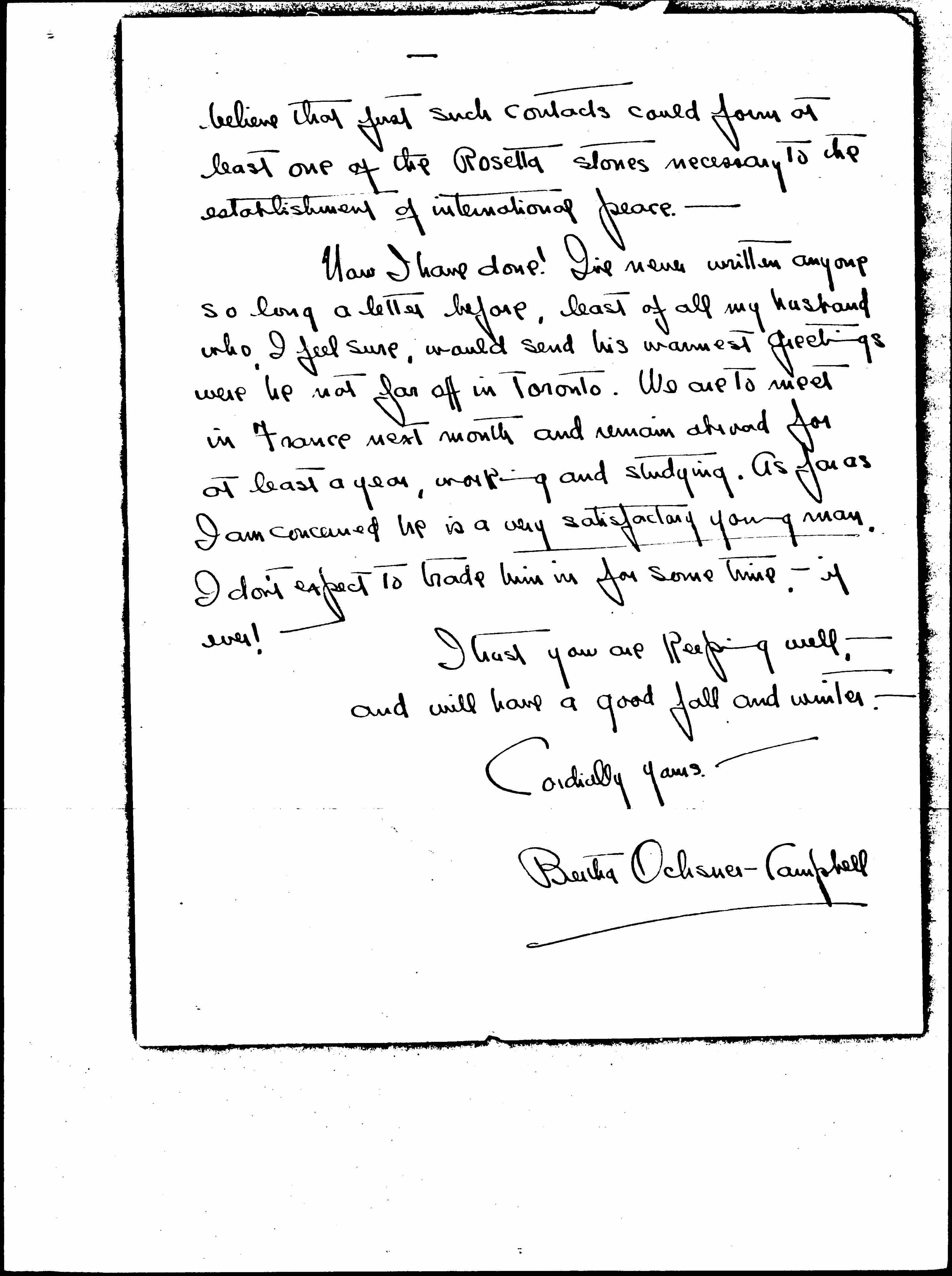 Bertha Ochsner-Campbell to Jane Addams, July 27, 1929