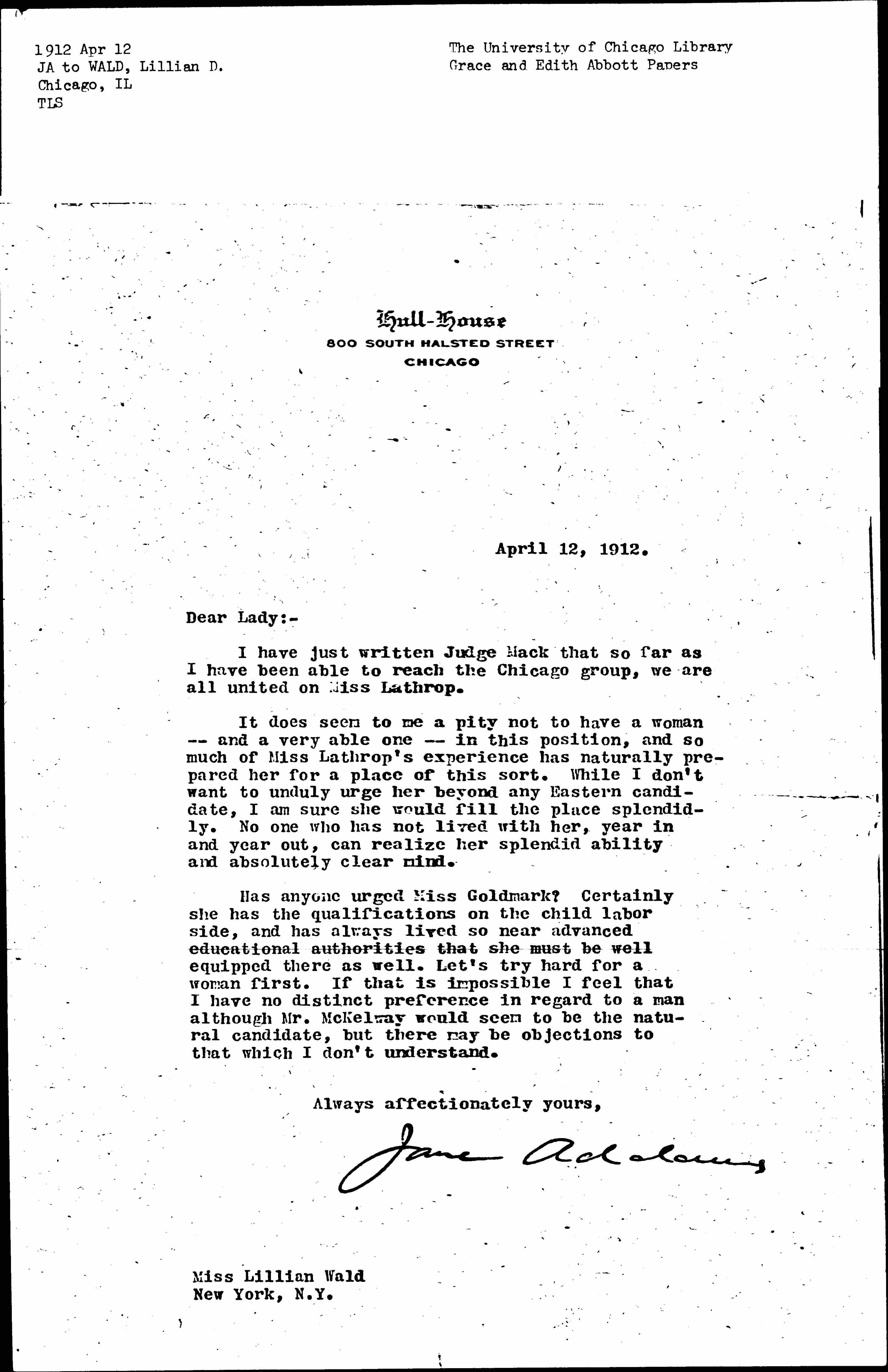 Jane Addams [signed]