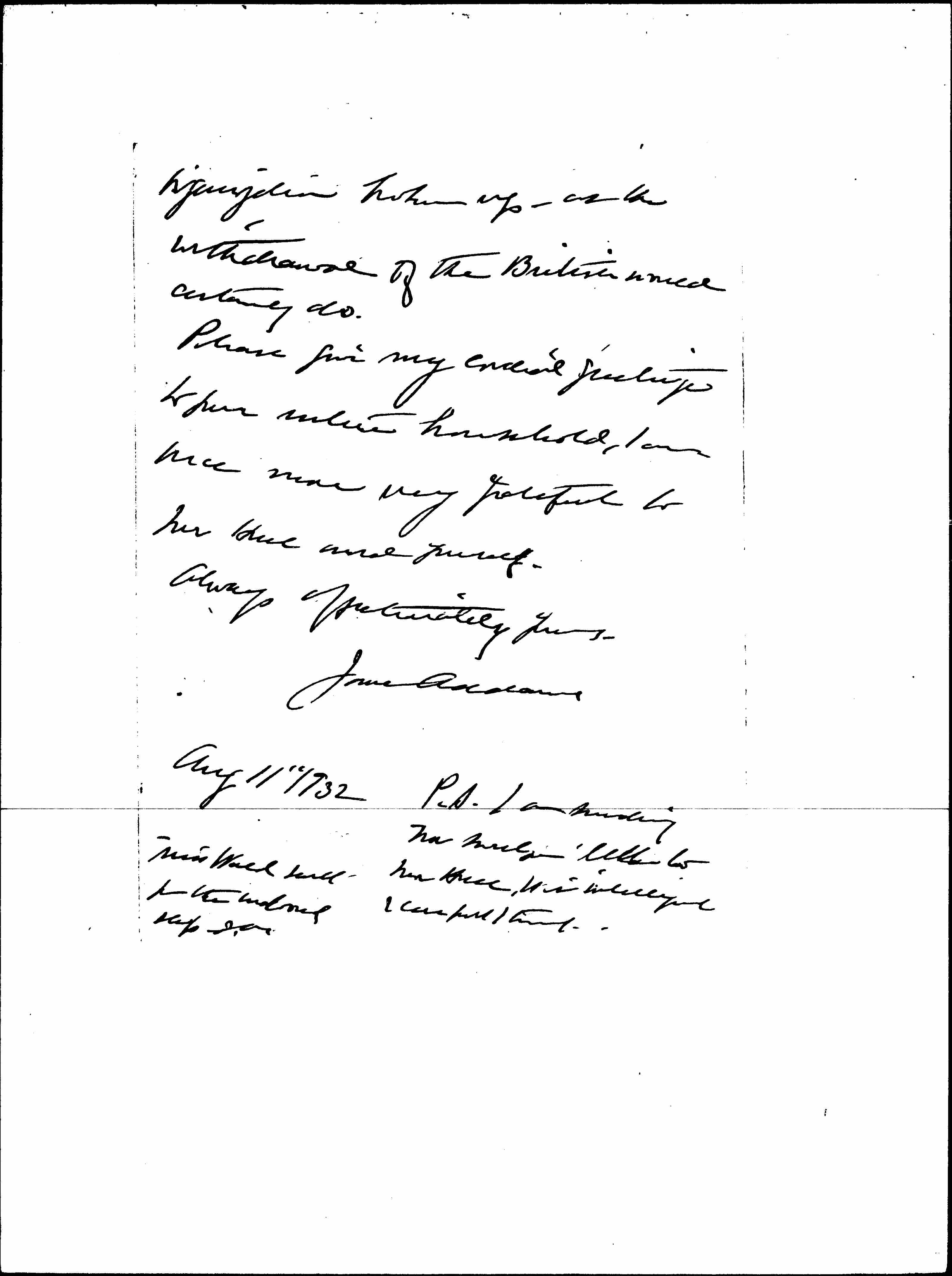 Aug 11" 1932 P.S. I am sending Mr [illegible] letter to Mr Hull, it is intelligent & careful I think.