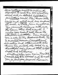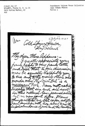 What you have written, proves that much of the evil you select as a topic, is as a rule, the result of ignorance or lack of judgment of mothers. This is your and my field for work. It is not your or my right, to incite more sending of women into the streets, in the [pretense] of necessary suffrage and give an open field to those wrongly inclined or ignorantly hysterical [page 4] and thus forcing into public life, the women who wish and need to be kept normal, for the sake of new lives. I agree with Stewart Edward White that the most any of us can accomplish in this life, is: "To help on, the next generation." Women canvassing on the street at night, as I understand, was the pretext for the evil and hysterical exhibition in Chicago, recently; this is no help to purity or wholesomeness.
