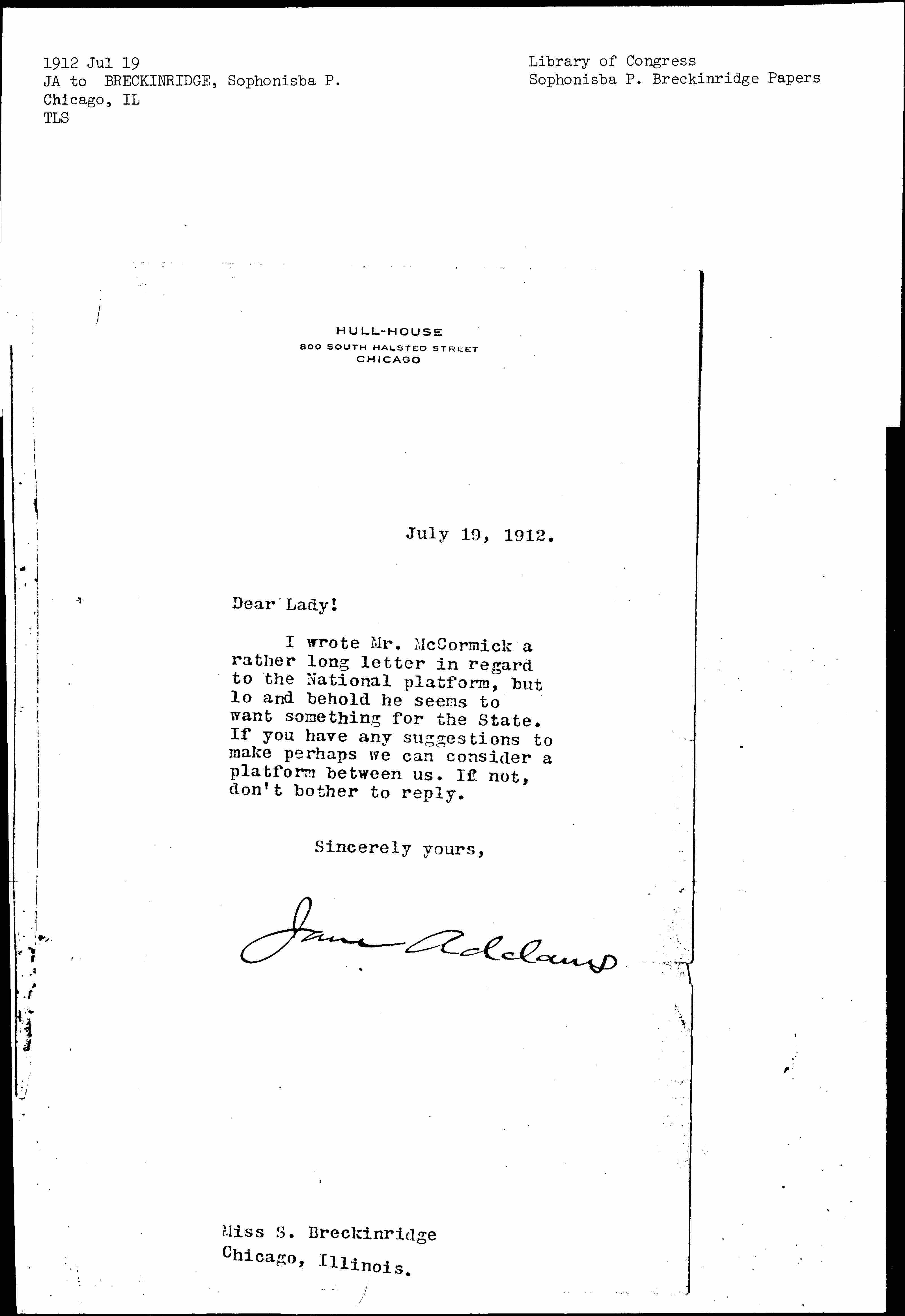 Jane Addams [signed]