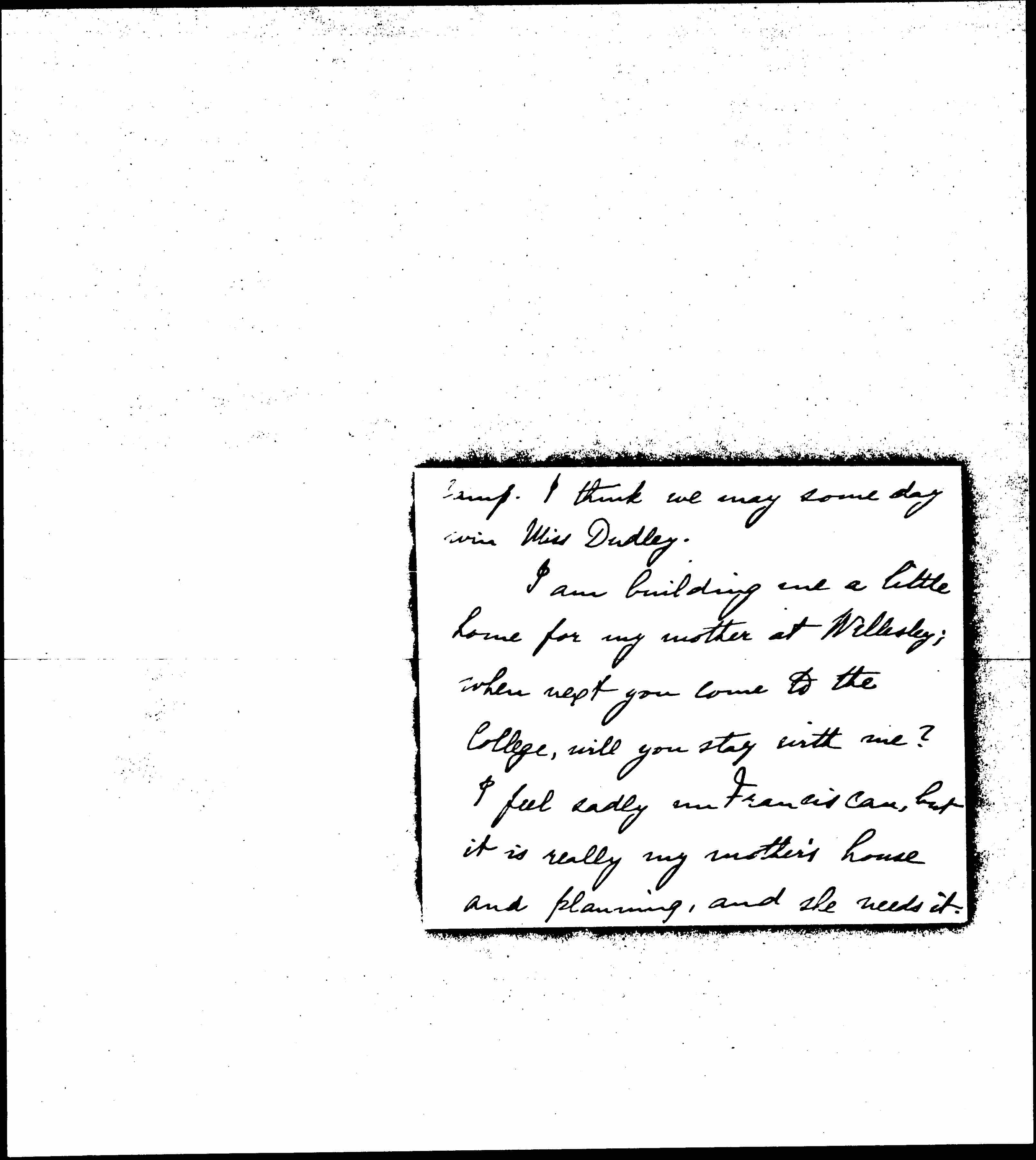 I am building me a little home for my mother at Wellesley; when next you come to the College, will you stay with me? I feel sadly in [Francis?] case, but it is really my mother's house and planning, and she needs it. [page 4] And one can use a house so democratically that I'm happy in the change.