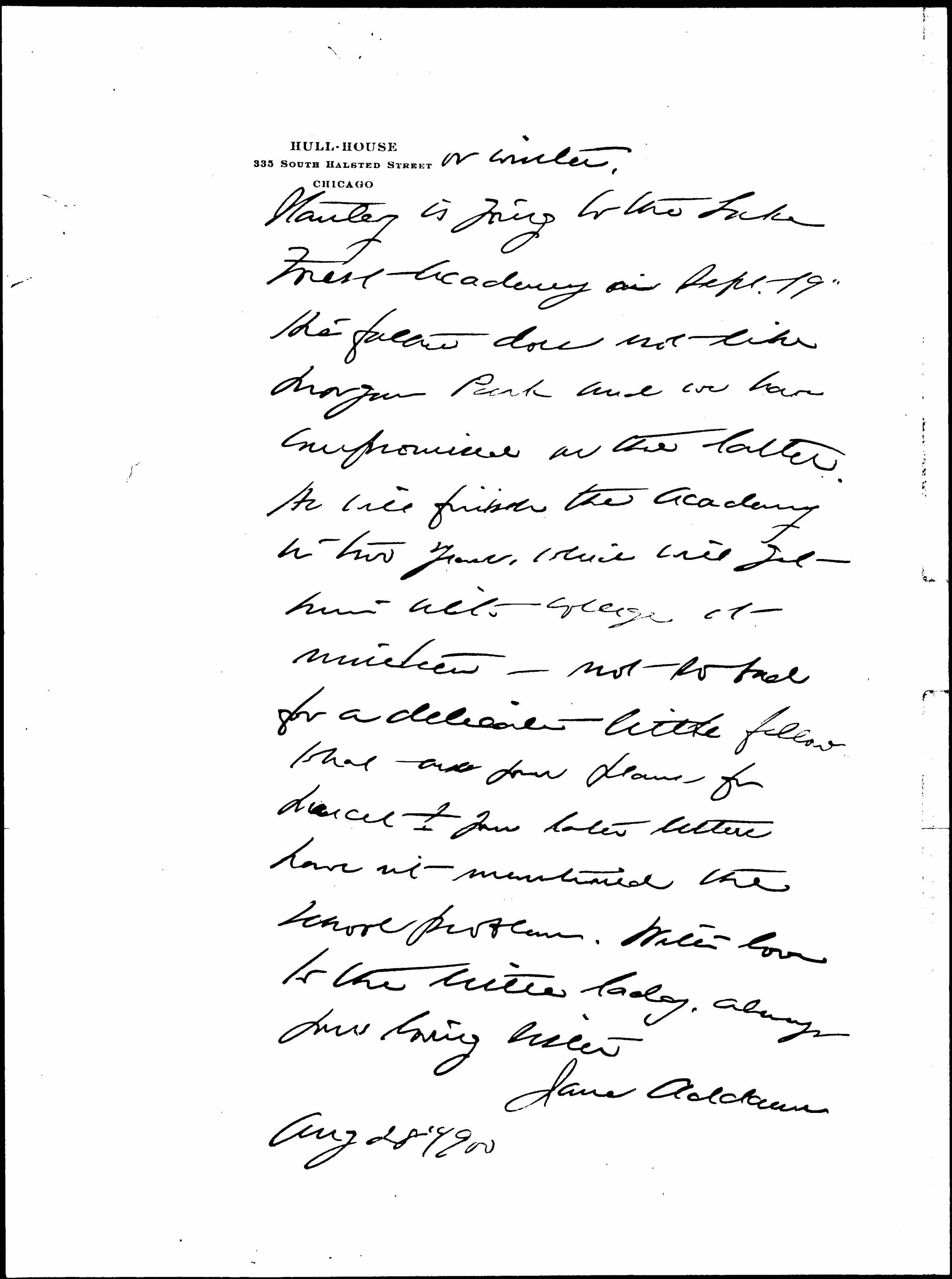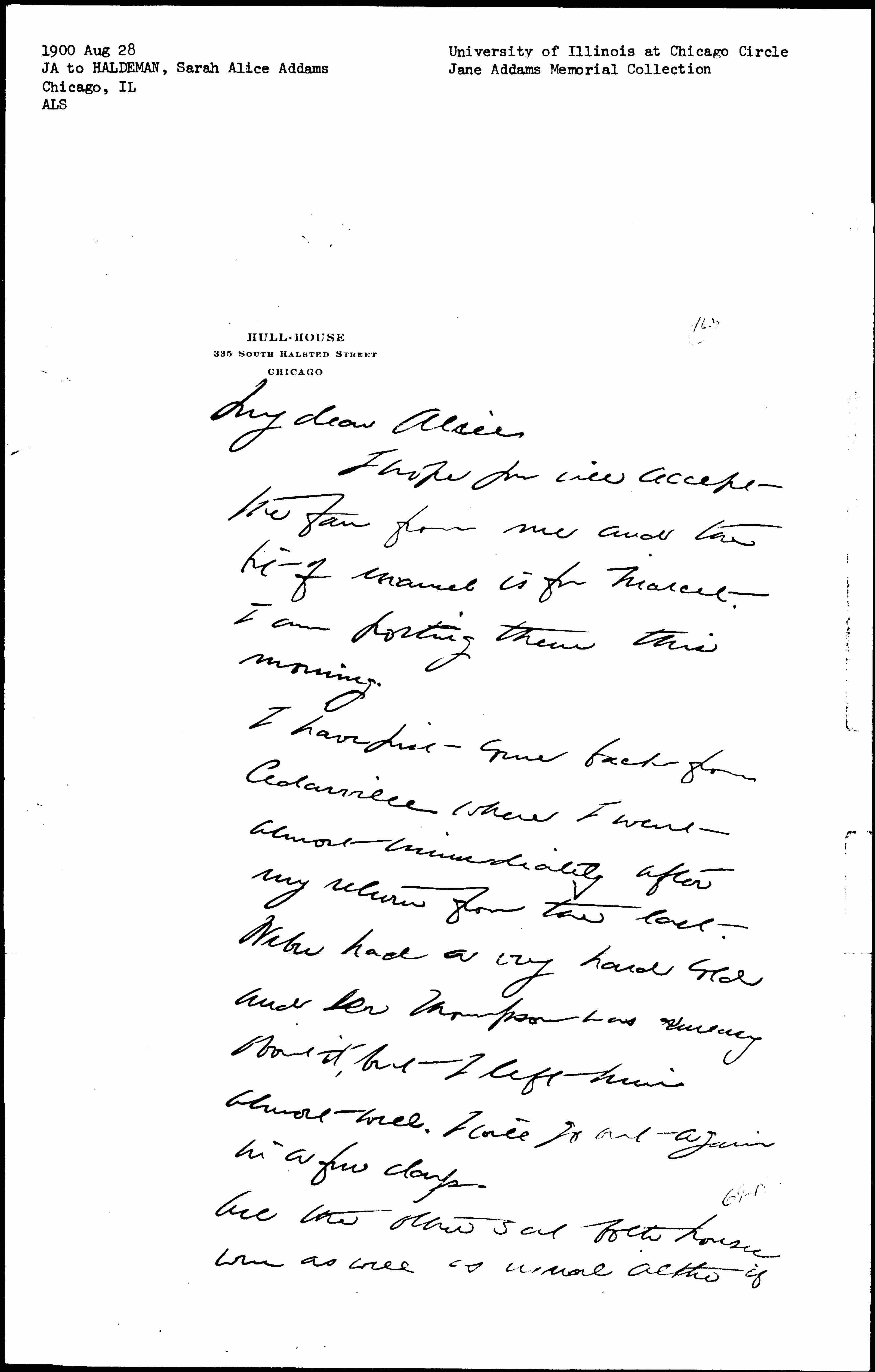 Jane Addams to Sarah Alice Addams Haldeman, August 28, 1900