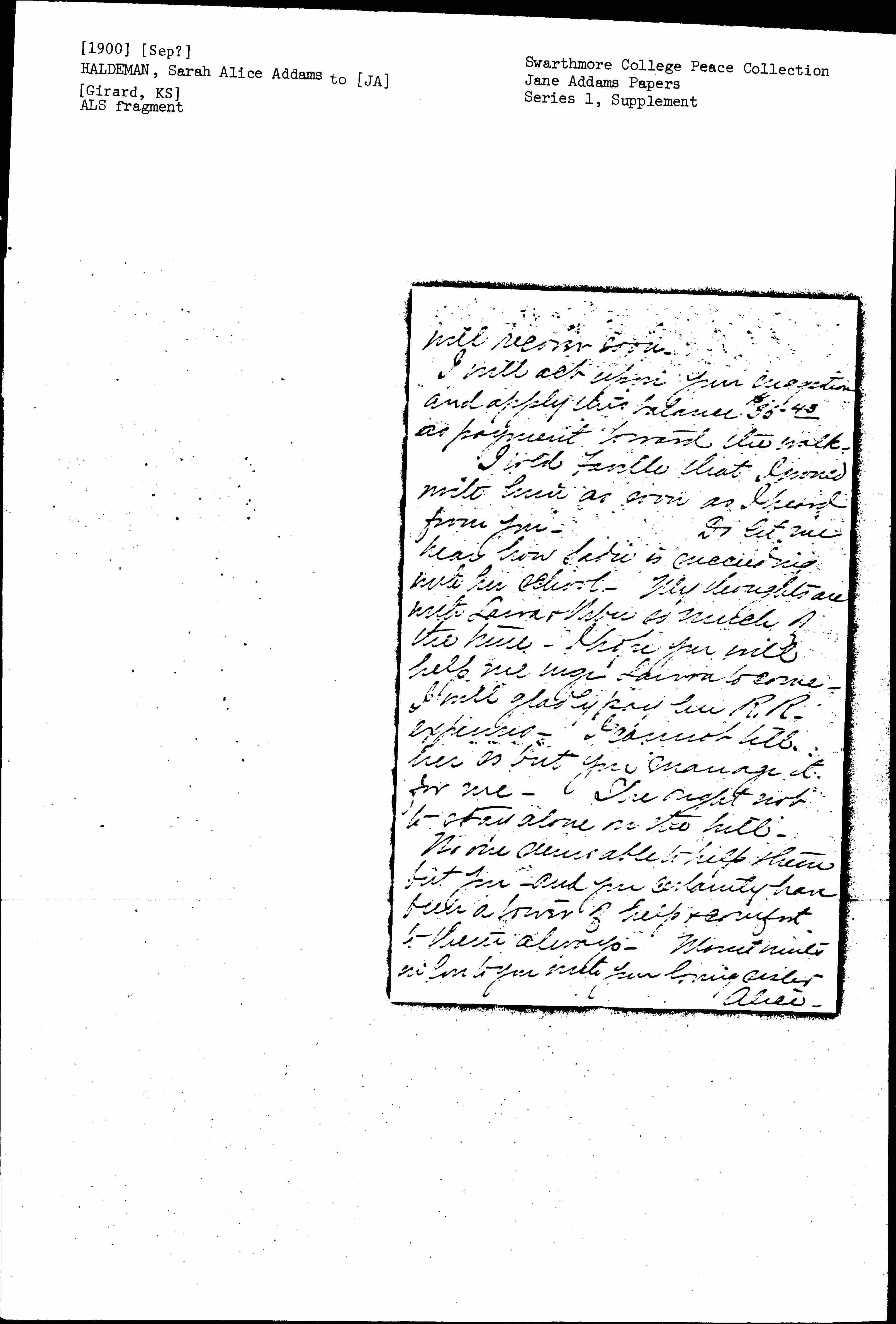 Sarah Alice Addams Haldeman to Jane Addams, ca. September, 1900 (fragment)
