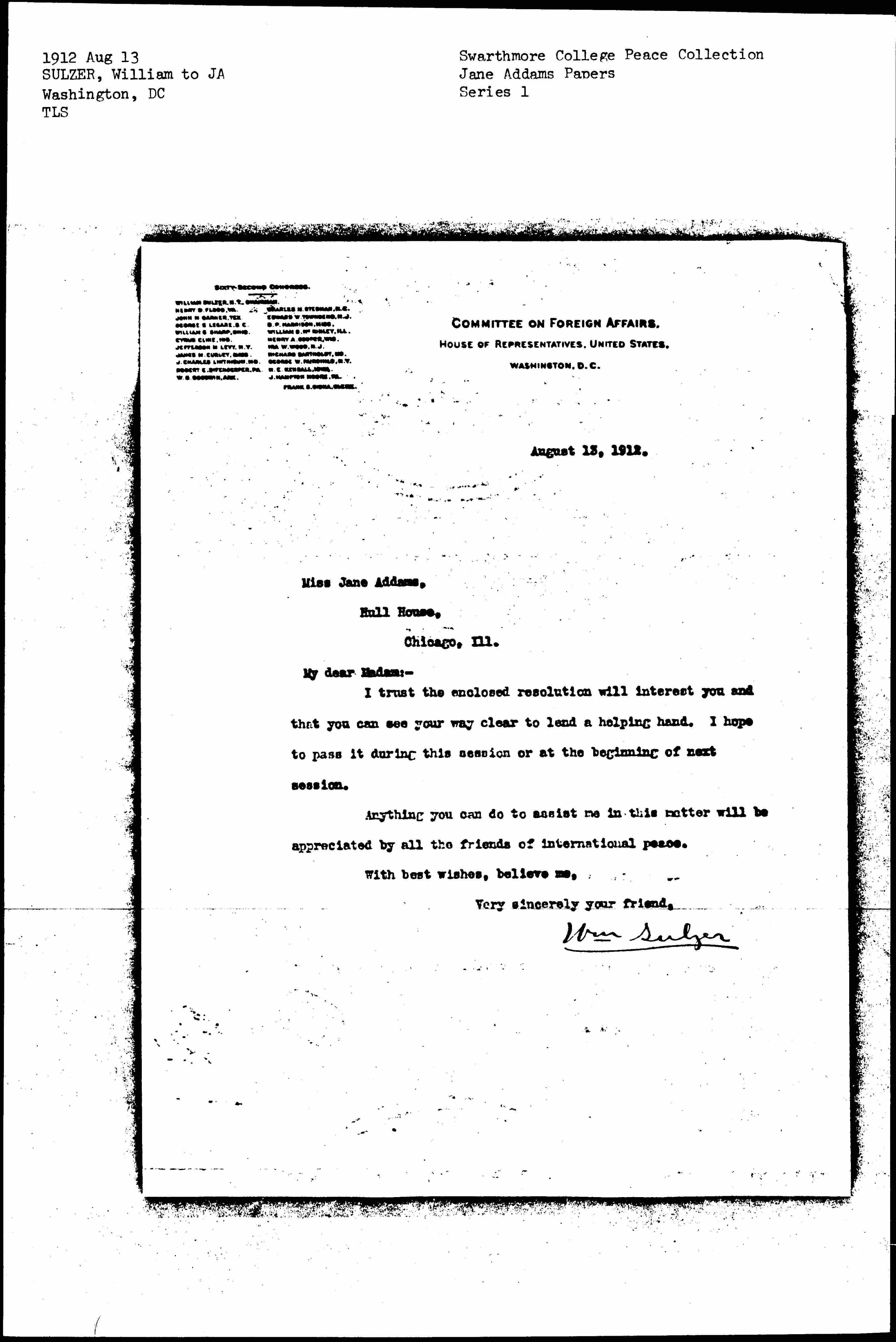 Anything you can do to assist me in this matter will be appreciated by all the friends of international peace.