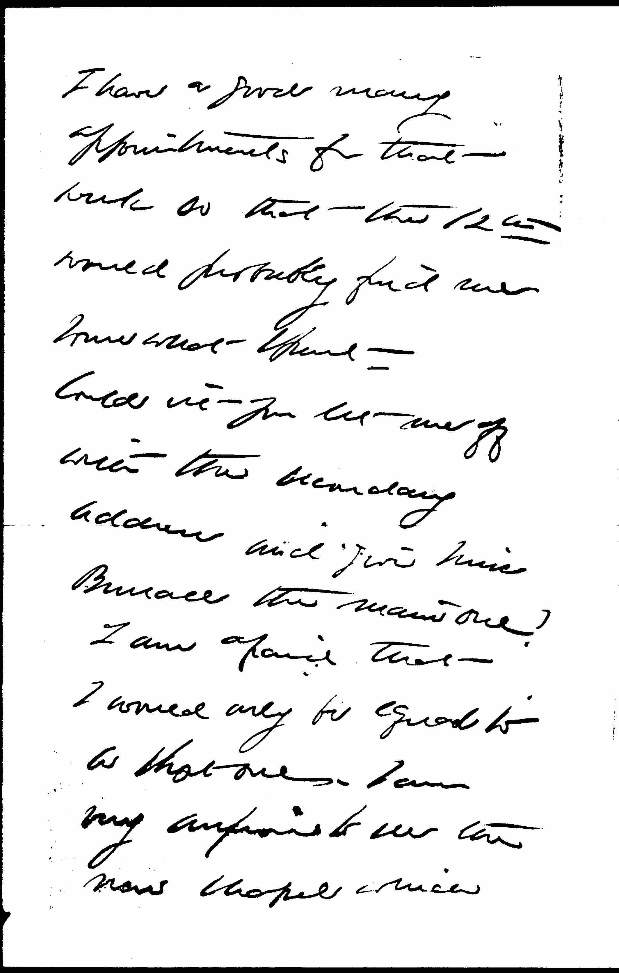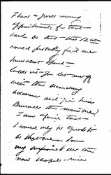 Couldn't you let me off with the secondary address and give Miss [Burrell?] the main one? I am afraid that I would only be equal to a short one. I am very anxious to see the new chapel which [page 3] everyone declares to be most successful.
