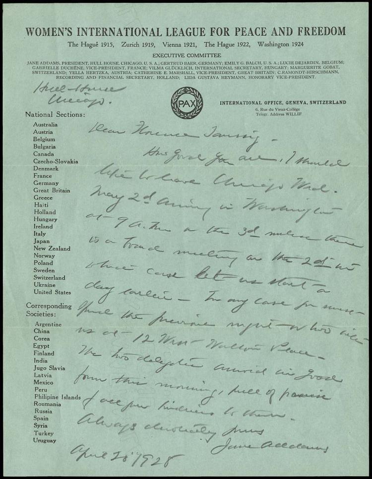 Jane Addams to Florence Gottschalk Taussig, April 20, 1928