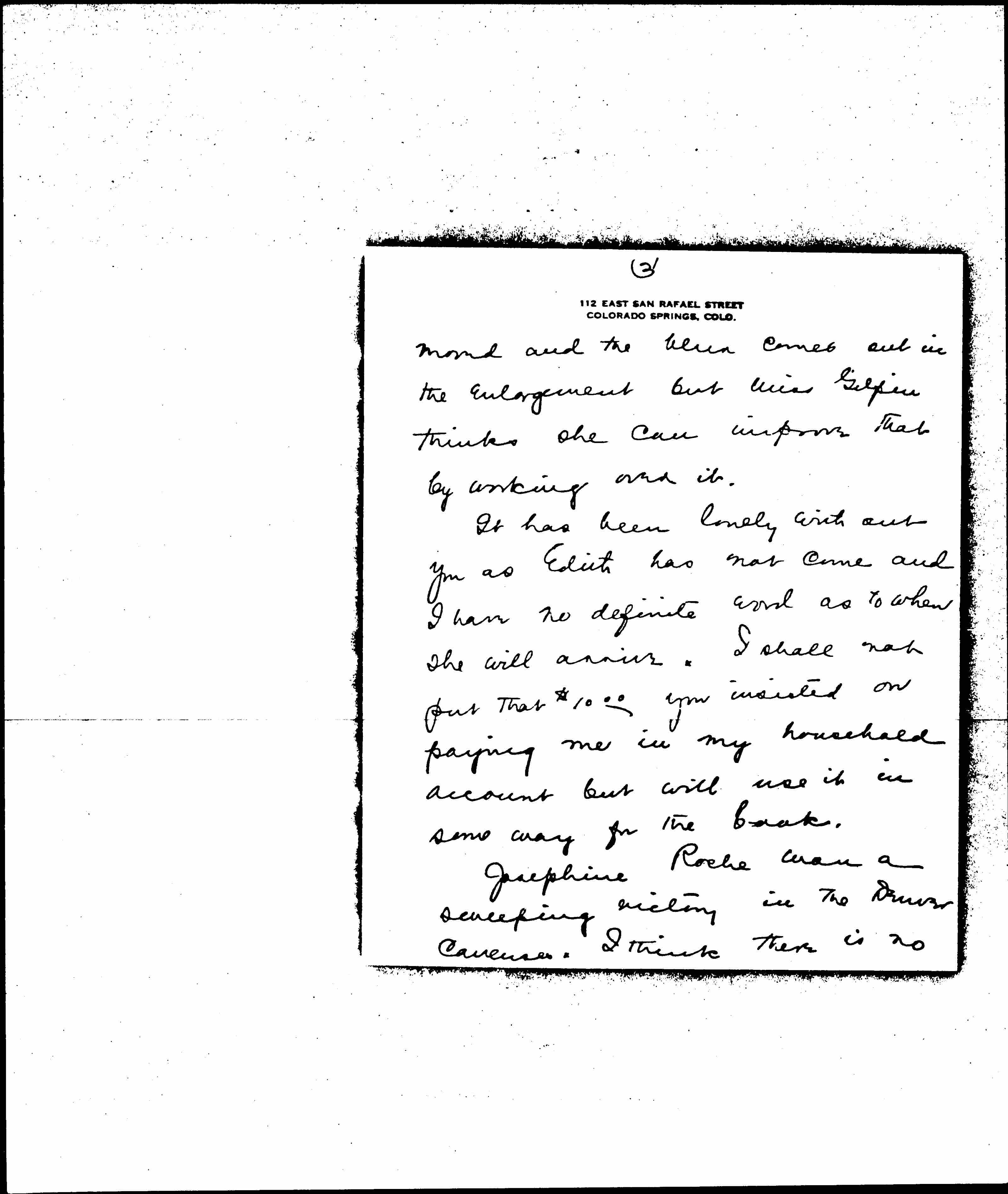 It has been lonely [without] you as Edith has not come and I have no definite word as to when she will arrive. I shall not put that [$10.00] you insisted on paying me in my household account but will use it in some way for the book.