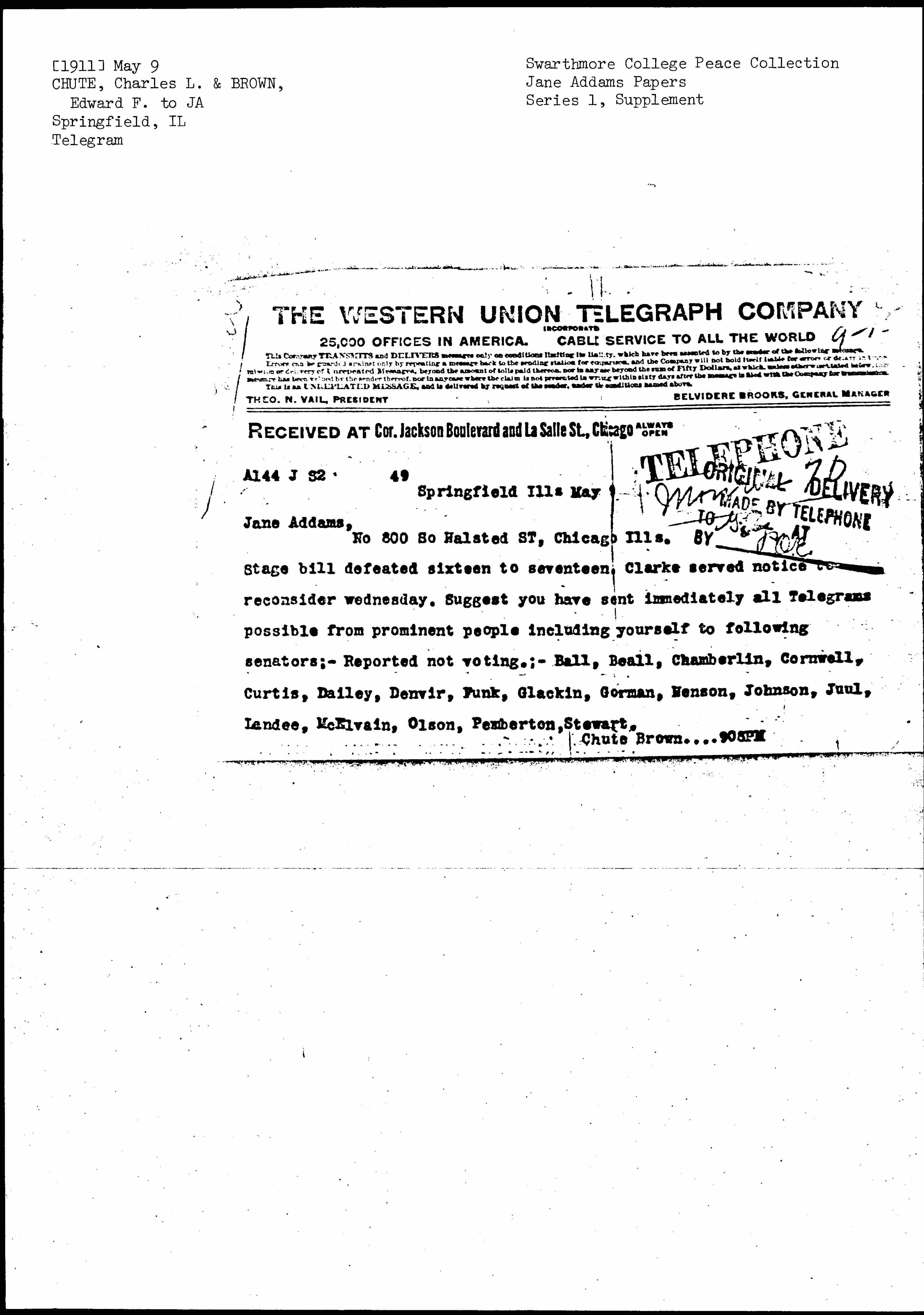 RECEIVED AT Cor. Jackson Boulevard and La Salle St., Chicago