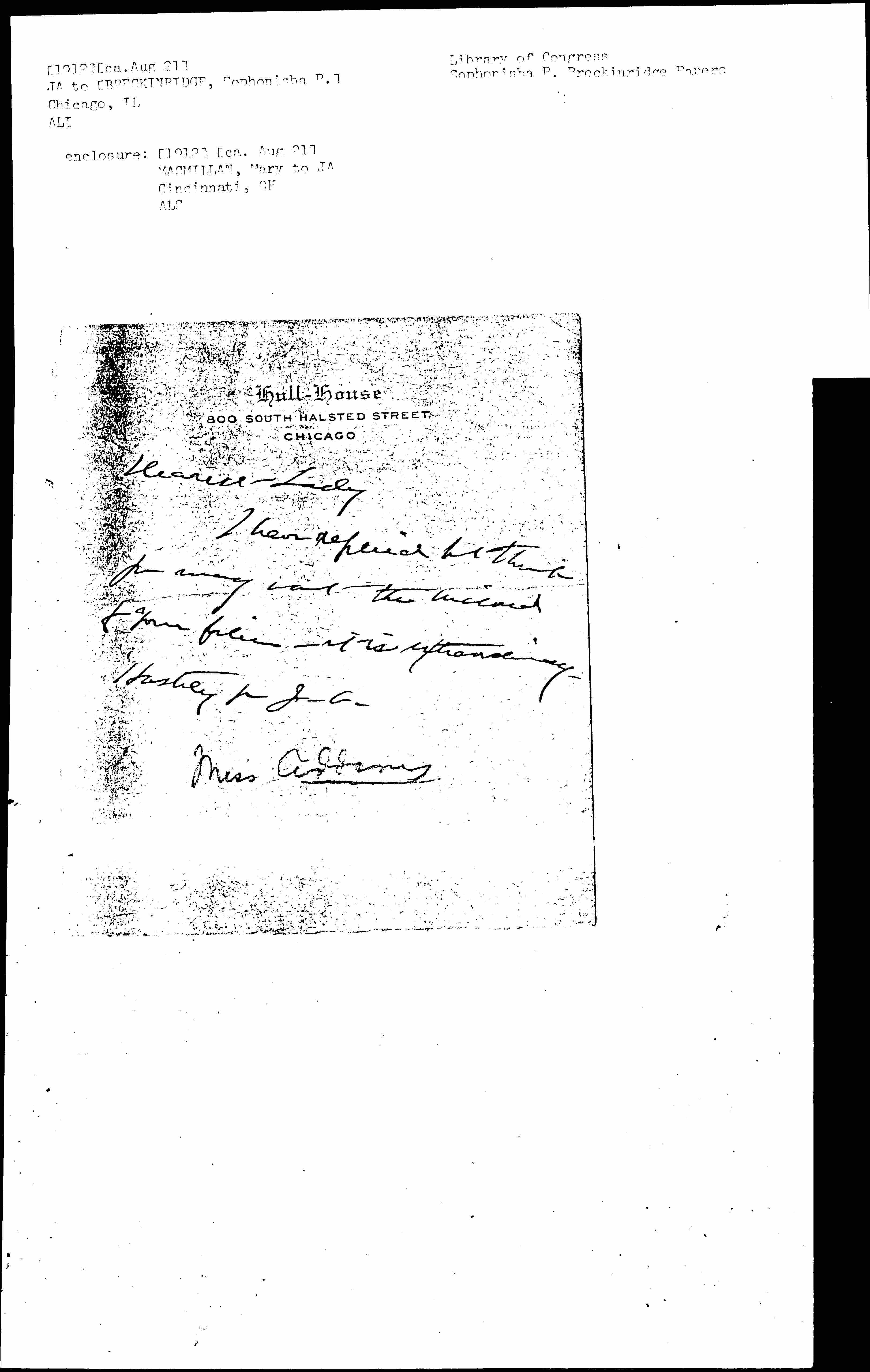 Hastily yrs J. A.