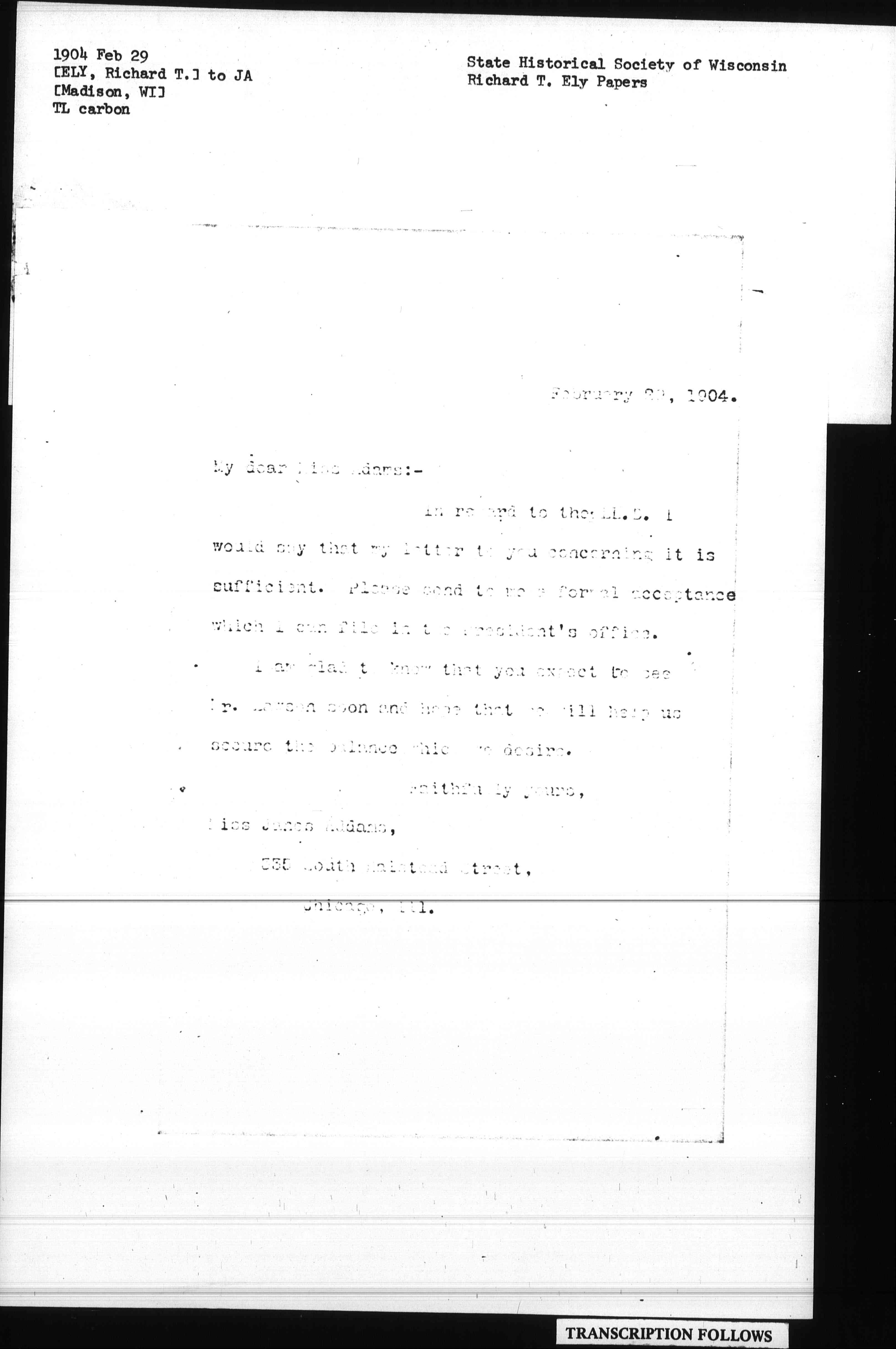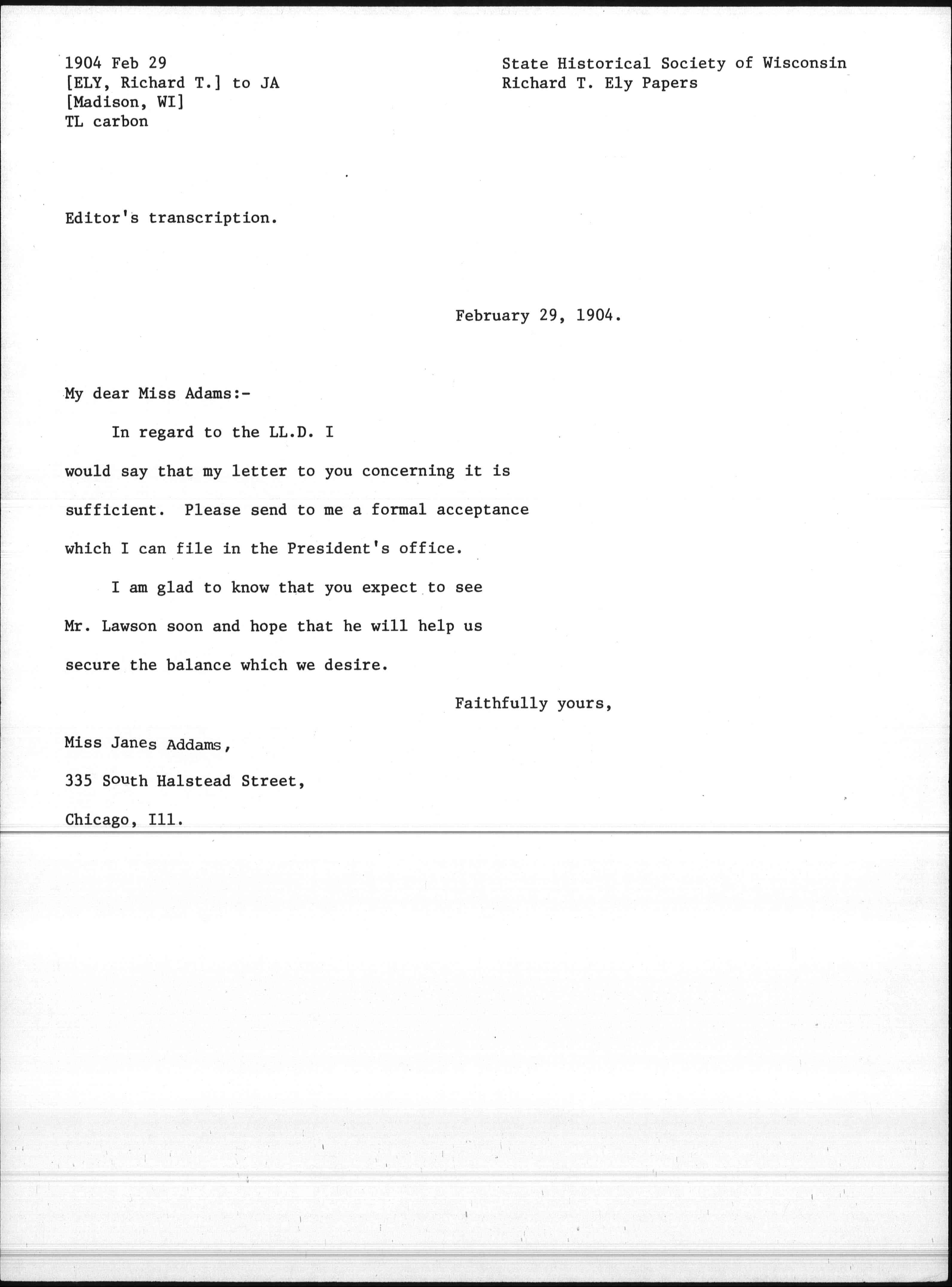 Miss [Jane Addams],