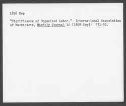Significance of Organized Labor, September 1898