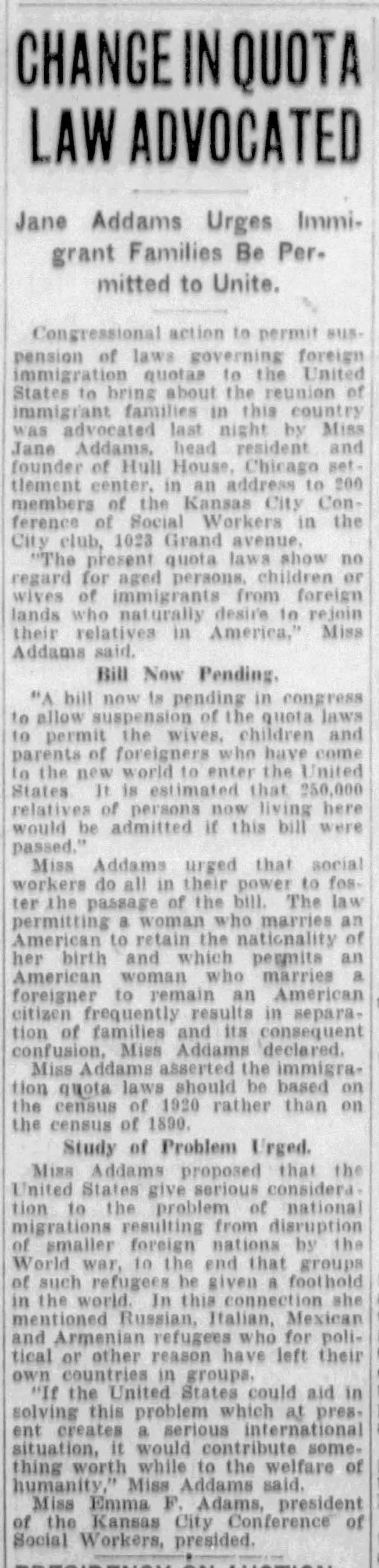 Address to the Kansas City Conference of Social Workers, May 14, 1928 (excerpts)