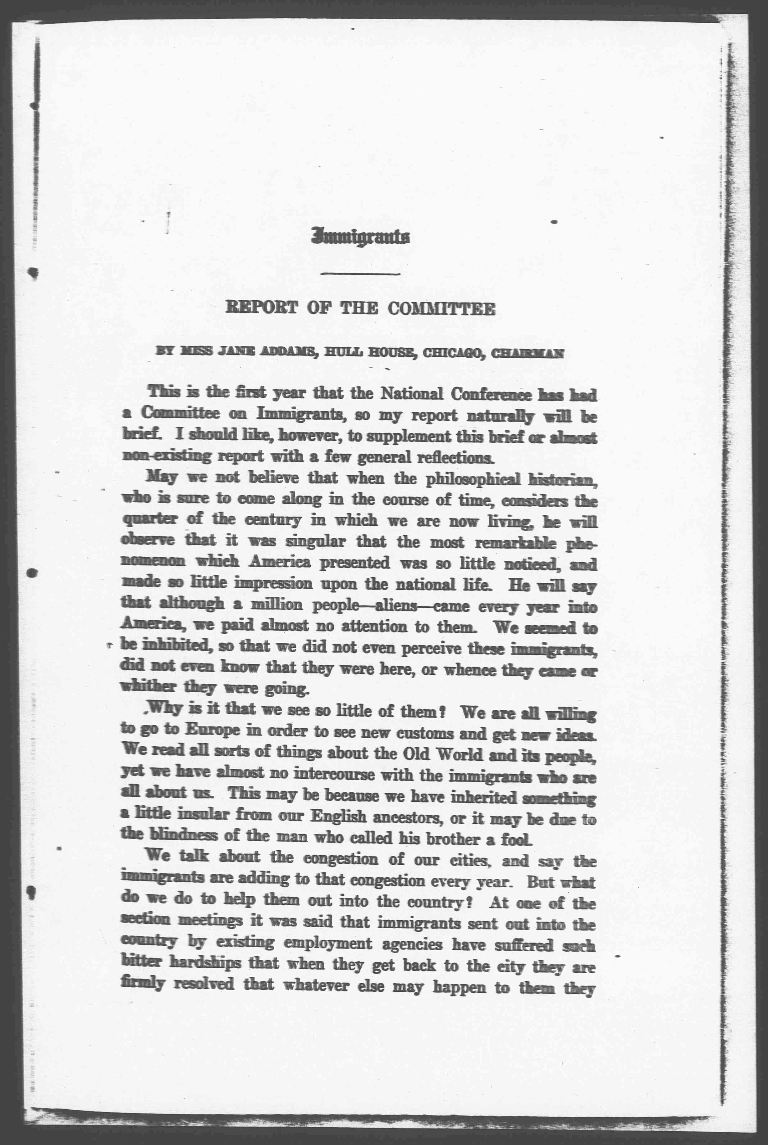 This is the first year that the National Conference has had a Committee on Immigrants, so my report naturally will be brief. I should like, however, to supplement this brief or almost non-existing report with a few general reflections.