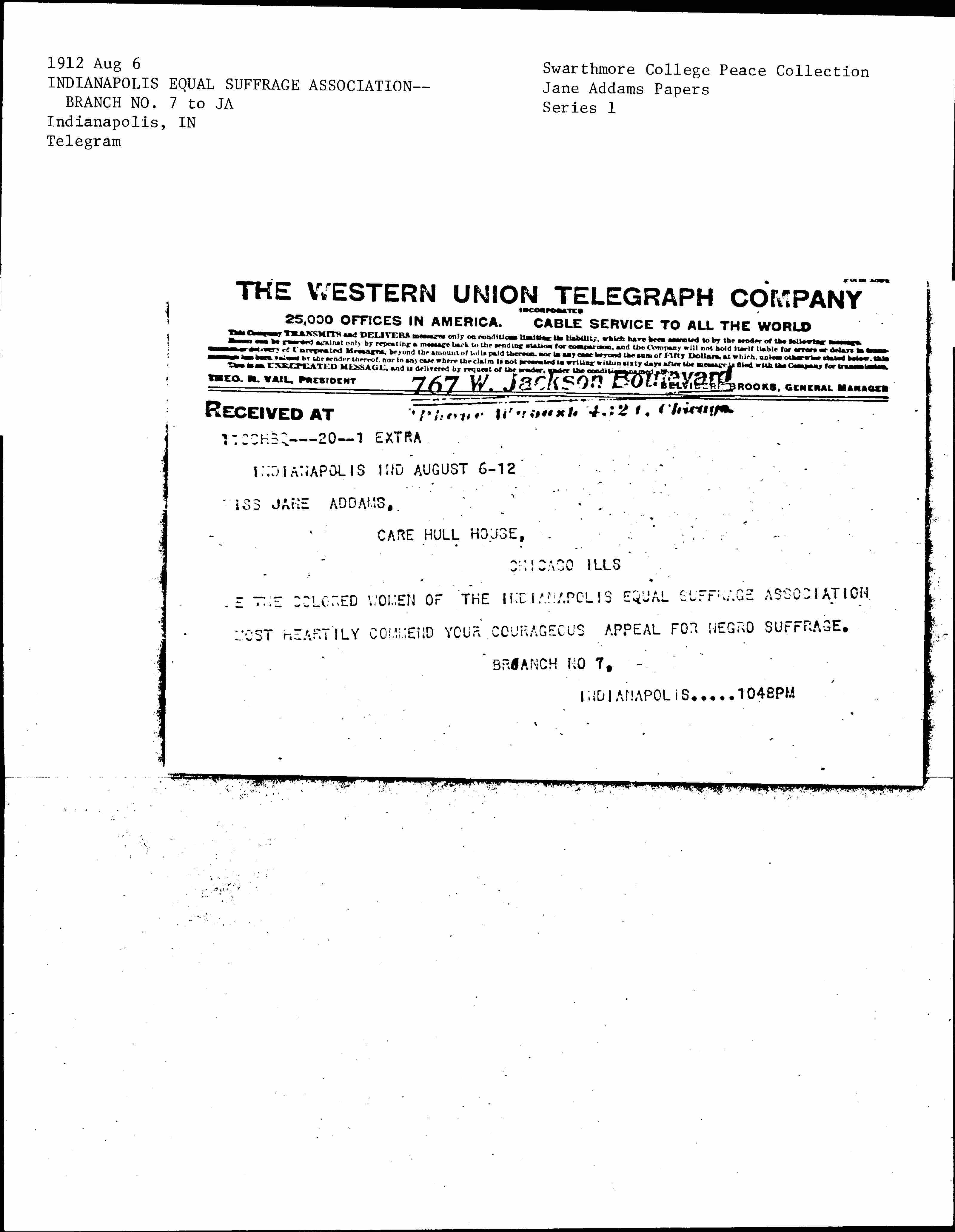 WE THE COLORED WOMEN OF THE INDIANAPOLIS EQUAL SUFFRAGE ASSOCIATION MOST HEARTILY COMMEND YOUR COURAGEOUS APPEAL FOR NEGRO SUFFRAGE.