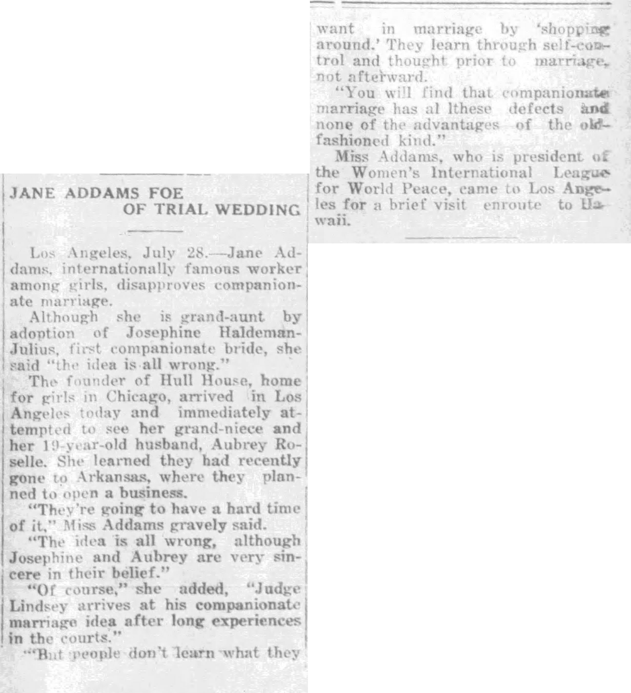 Statement on Trial Marriages, July 28, 1928