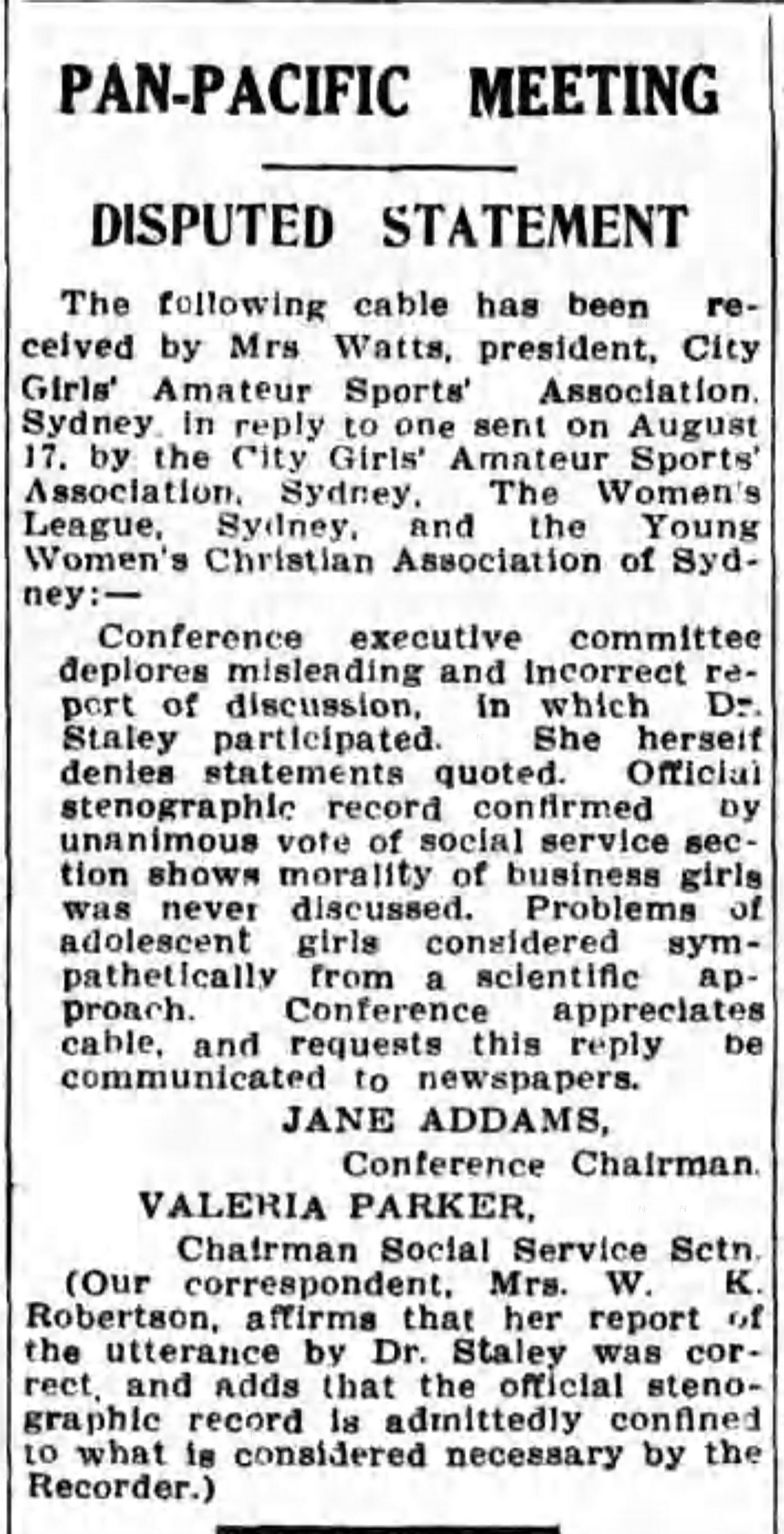 Jane Addams and Valeria Hopkins Parker to Margaret Watts, August 20, 1928