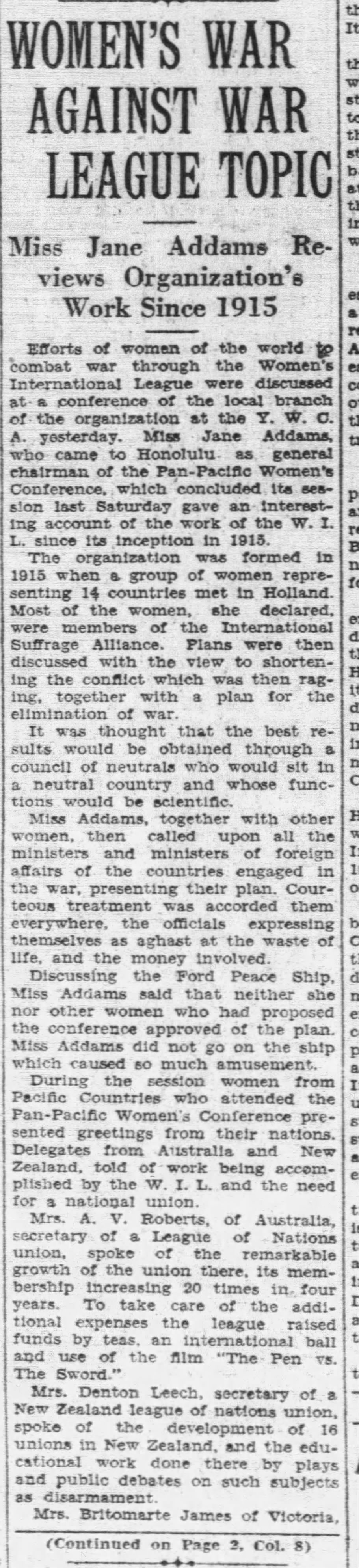 Luncheon Talk to the Women's International League for Peace and Freedom, Hawaiian Section, August 21, 1928 (summary)