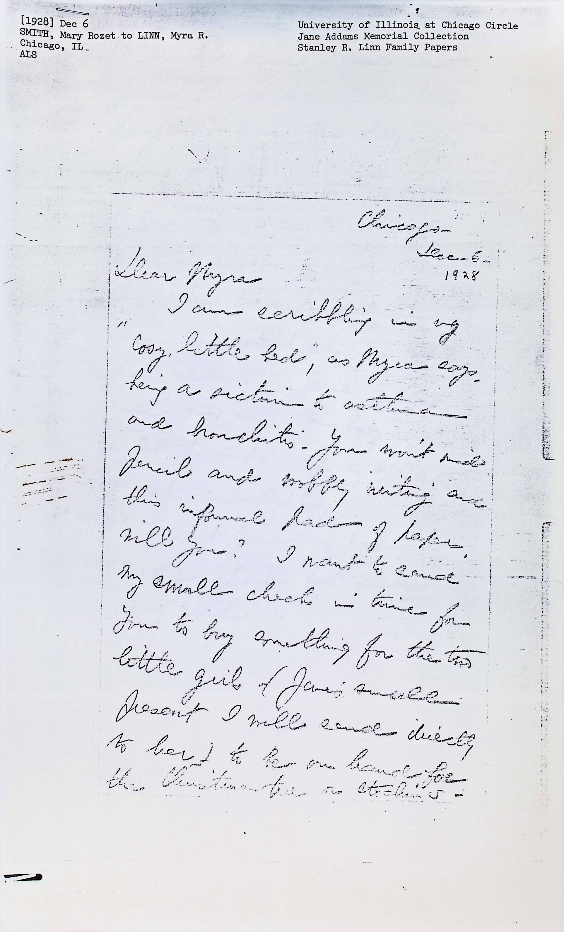 Mary Rozet Smith to Myra Harriet Reynolds Linn, December 6, 1928